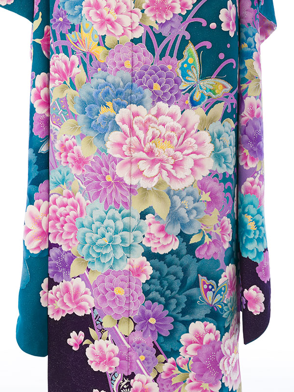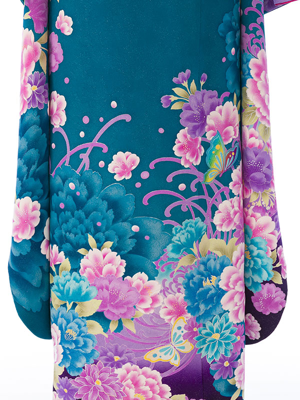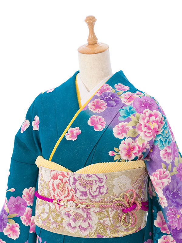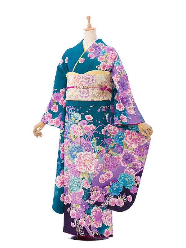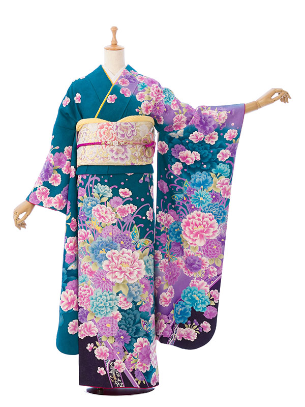 振袖|緑系|桜 牡丹 |7S183|対応身長:155-165cm|サイズ:7号-13号