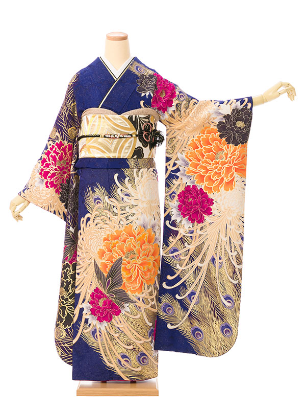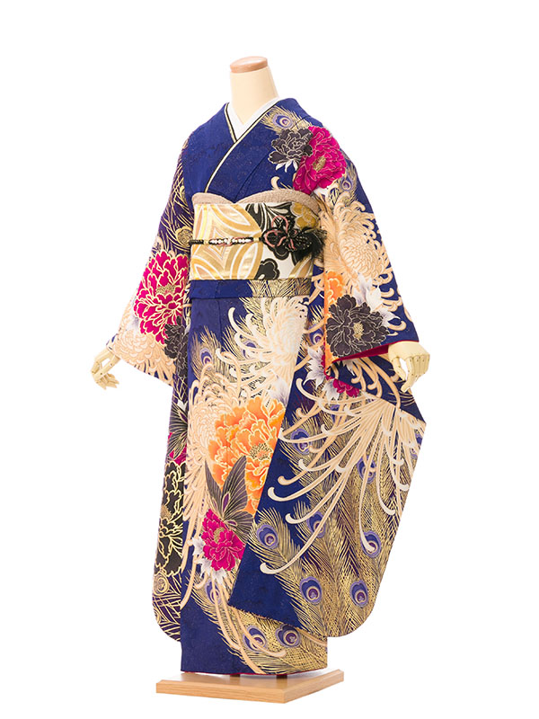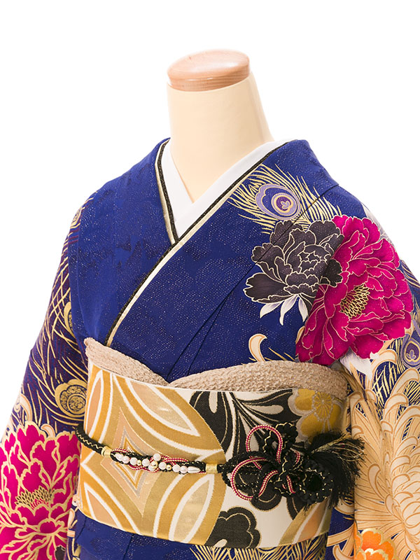振袖|青系| 牡丹 |1S2454|対応身長:153-165cm|サイズ:7号-13号