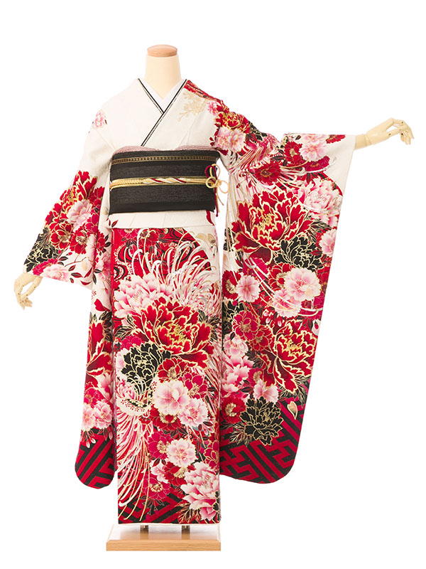 振袖|白系|桜 牡丹 |1S2539|対応身長:153-165cm|サイズ:7号-13号