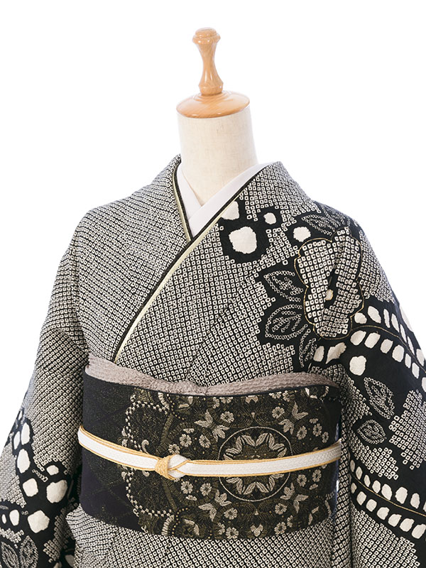 振袖|黒系|桜 |4S594|対応身長:155-165cm|サイズ:7号-13号