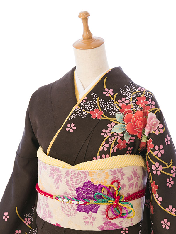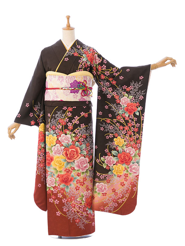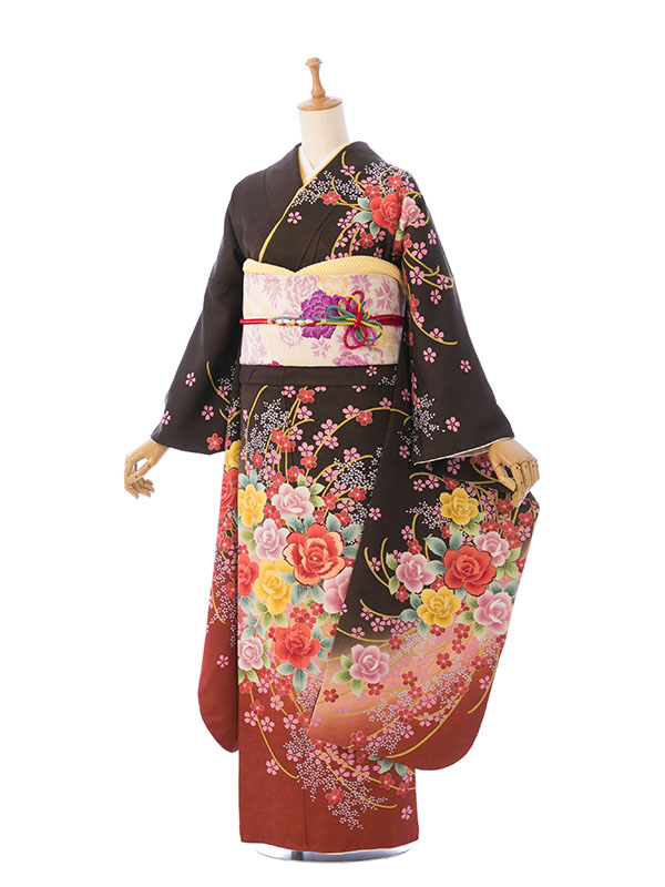 振袖|茶系|桜 |5S715|対応身長:150-160cm|サイズ:7号-9号