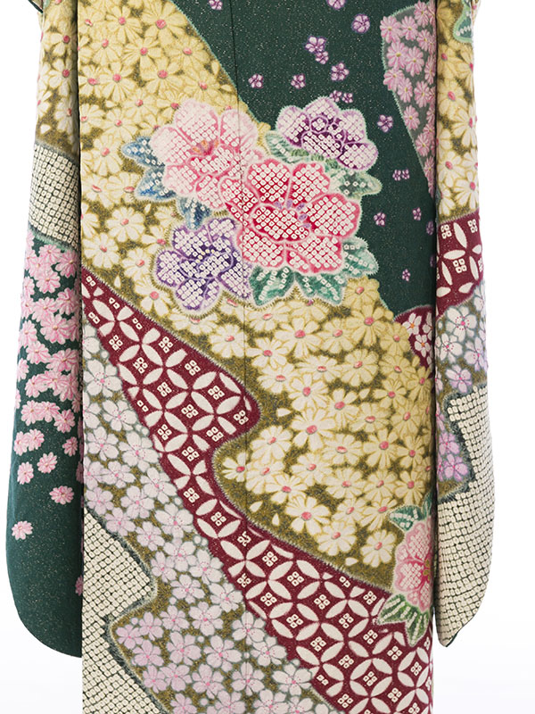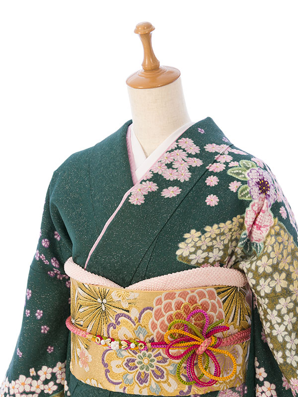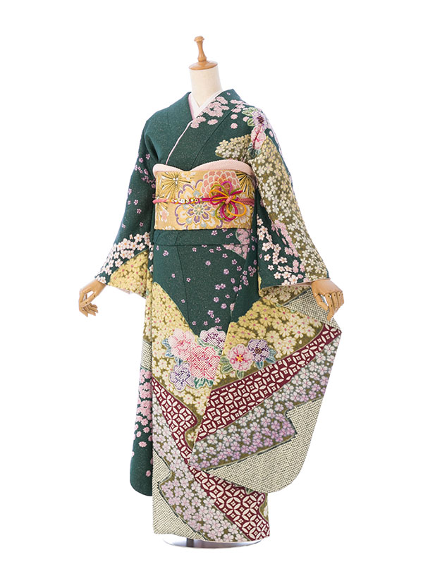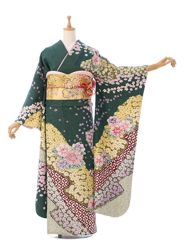 振袖|緑系| 牡丹 |5S461|対応身長:153-165cm|サイズ:7号-13号