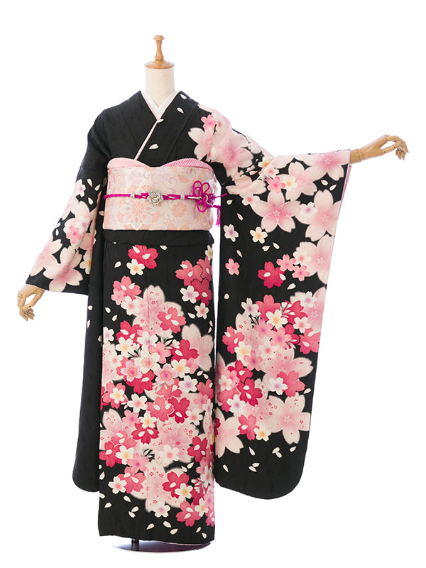 振袖|黒系|桜 |5S666|対応身長:155-163cm|サイズ:7号-13号