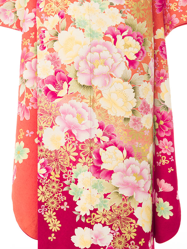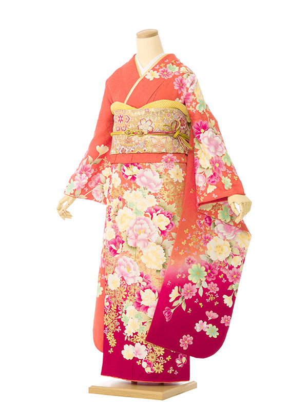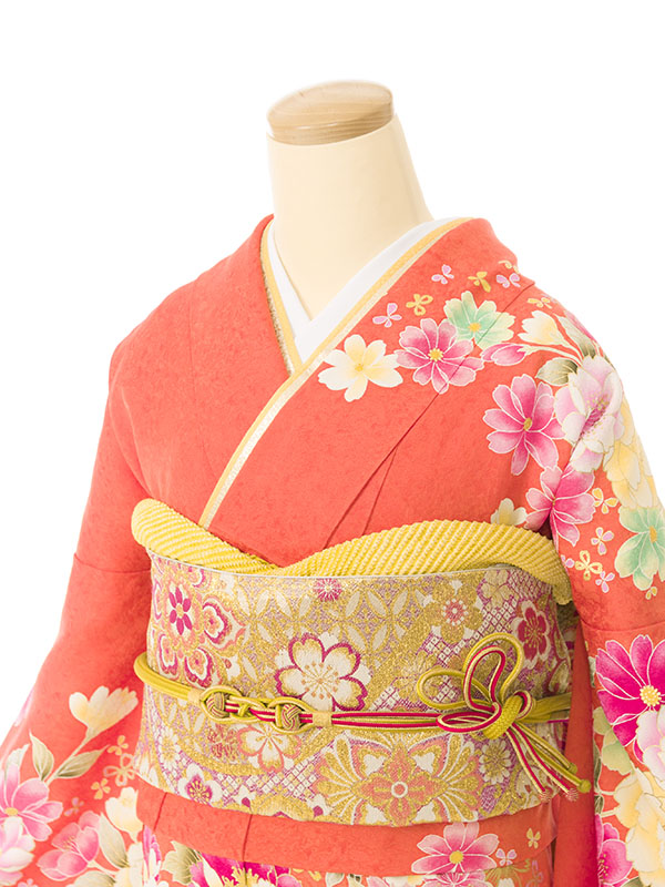振袖|オレンジ系|桜 牡丹 |7S430|対応身長:153-162cm|サイズ:7号-13号