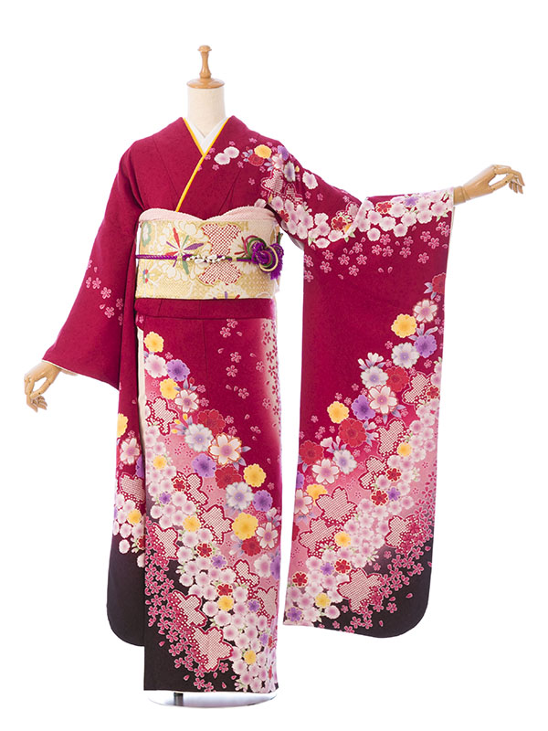 振袖|赤系|桜 |6S354|対応身長:153-165cm|サイズ:7号-13号