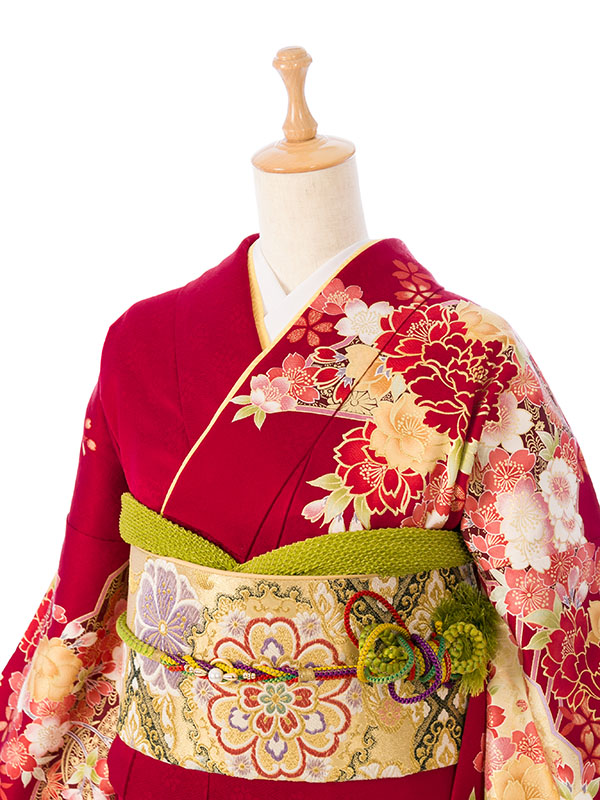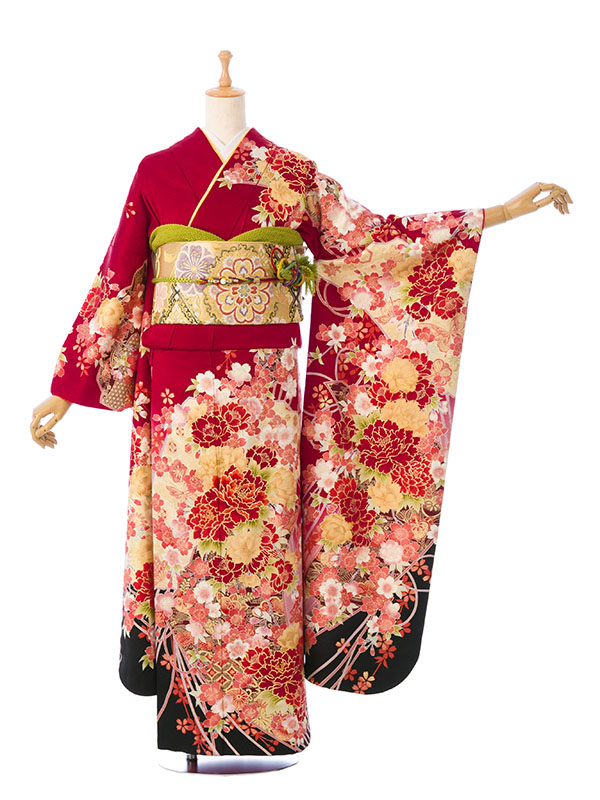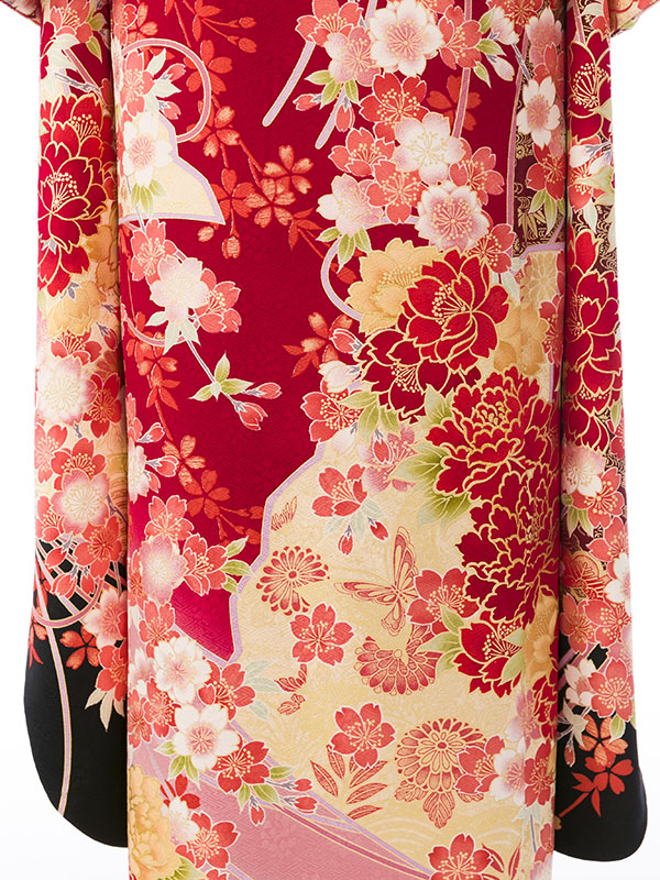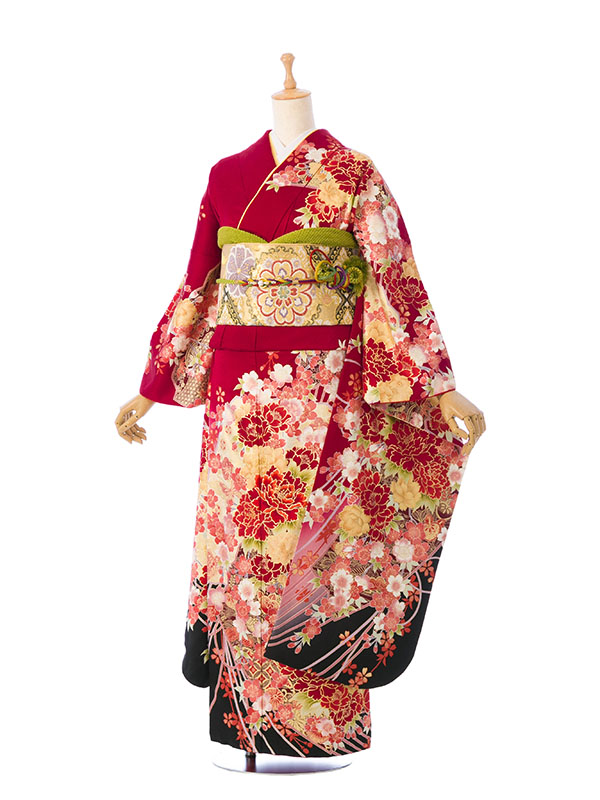 振袖|赤系|桜 牡丹 |1S1870|対応身長:155-165cm|サイズ:13号-17号