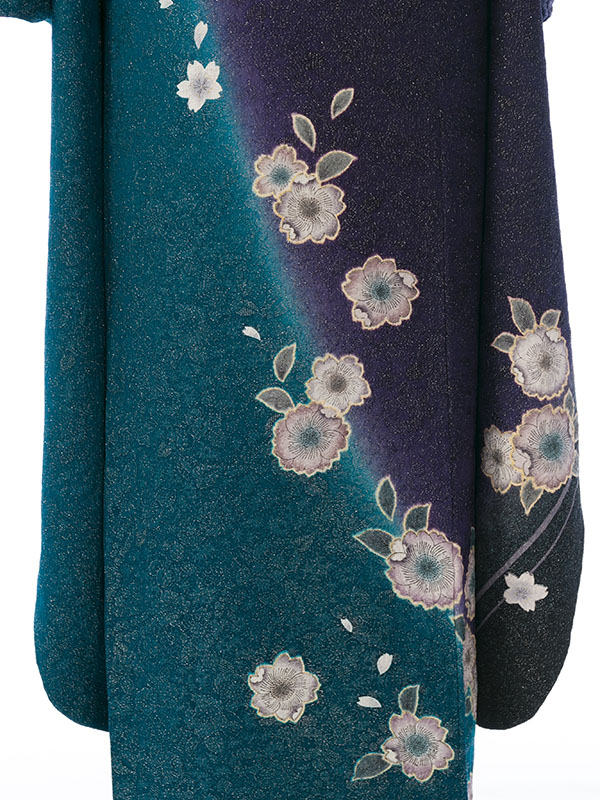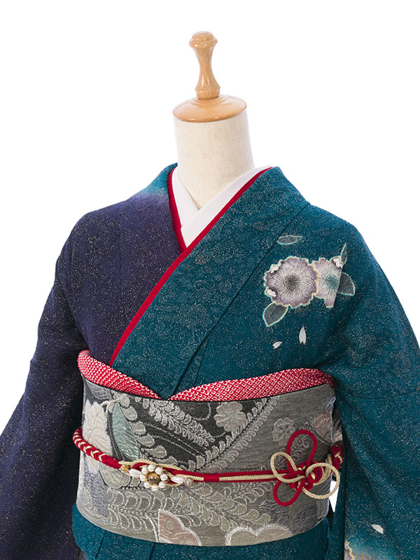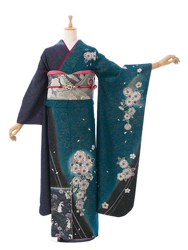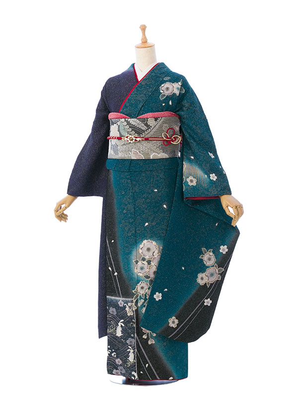 振袖|青系|桜 |4S590|対応身長:155-165cm|サイズ:7号-13号