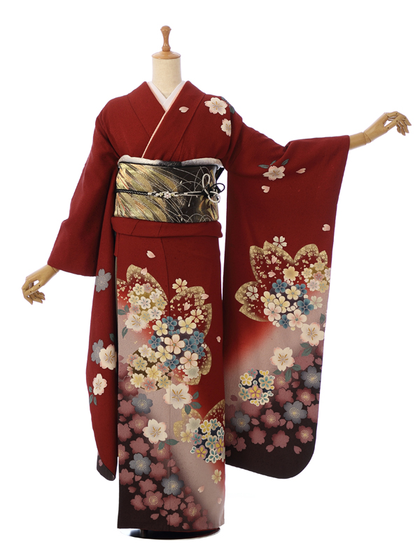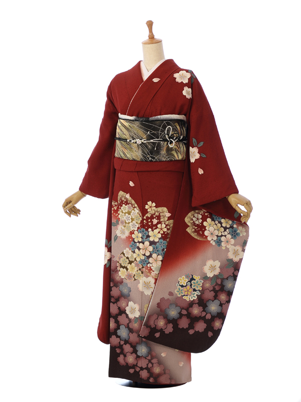 振袖|赤系|桜 |4S618|対応身長:153-165cm|サイズ:7号-13号