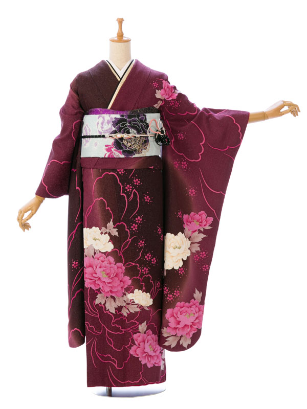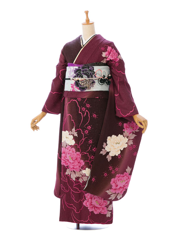 振袖|茶系| 牡丹 |5S750|対応身長:153-165cm|サイズ:7号-13号