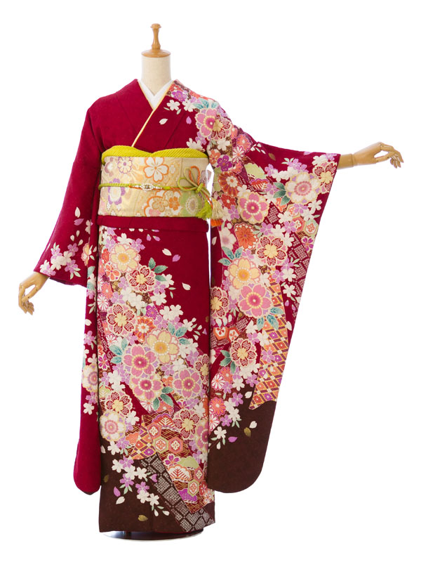 振袖|赤系|桜 |6S043|対応身長:155-165cm|サイズ:7号-13号