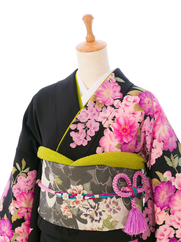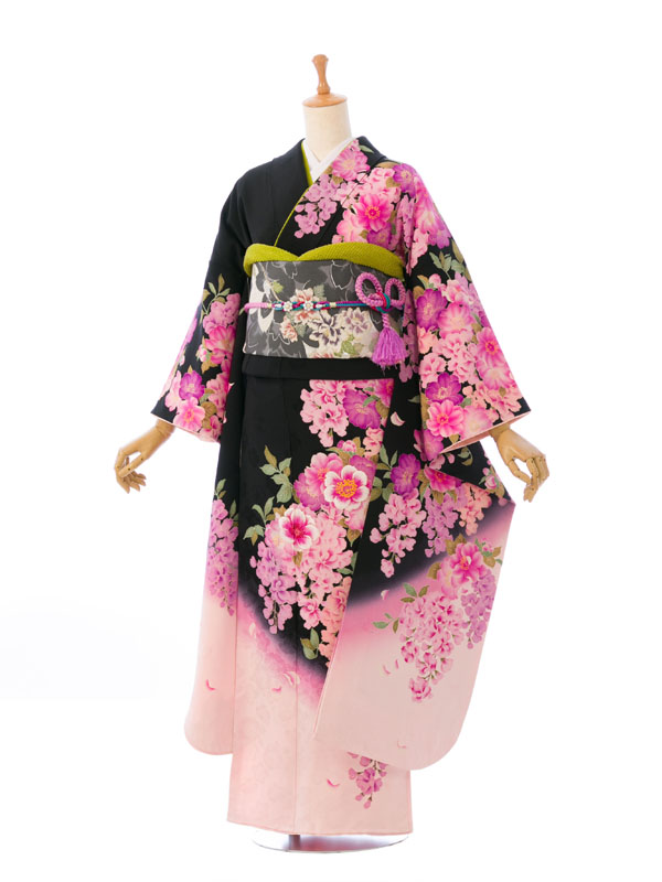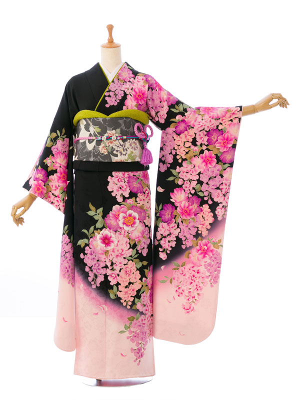 振袖|黒系|桜 |5S424|対応身長:148-160cm|サイズ:7号-13号