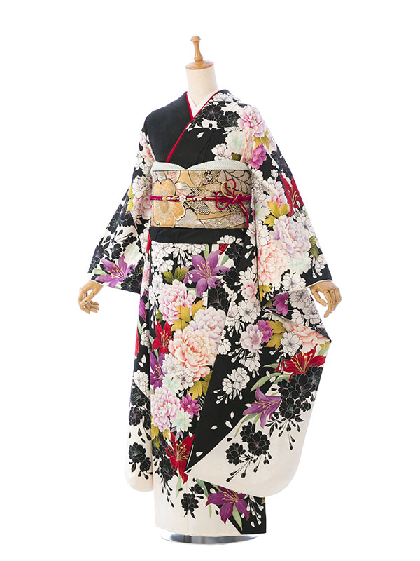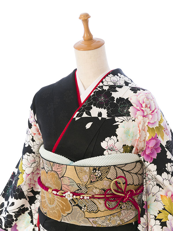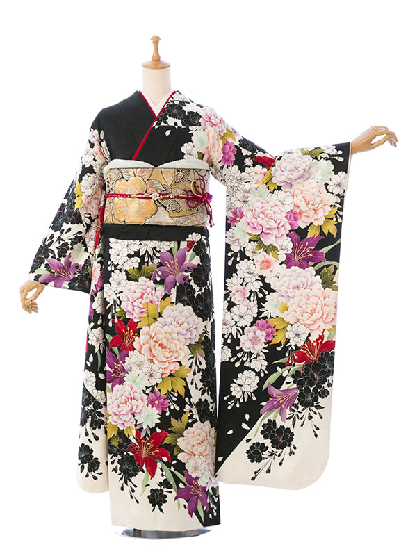 振袖|黒系|桜 牡丹 |1S2538|対応身長:158-168cm|サイズ:7号-13号