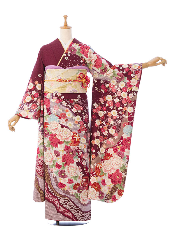 振袖|赤系|桜 牡丹 |1S2887|対応身長:153-165cm|サイズ:7号-13号