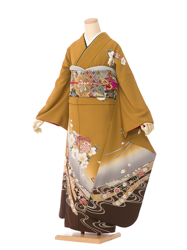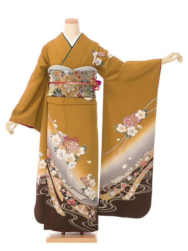 振袖|からし系|桜 |4S570|対応身長:160-168cm|サイズ:7号-13号