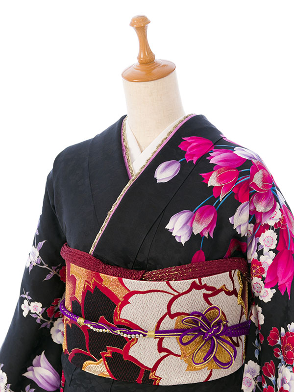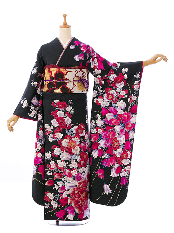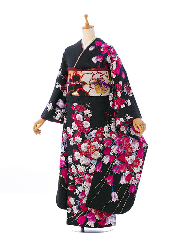 振袖|黒系|桜 |7S571|対応身長:155-165cm|サイズ:7号-13号