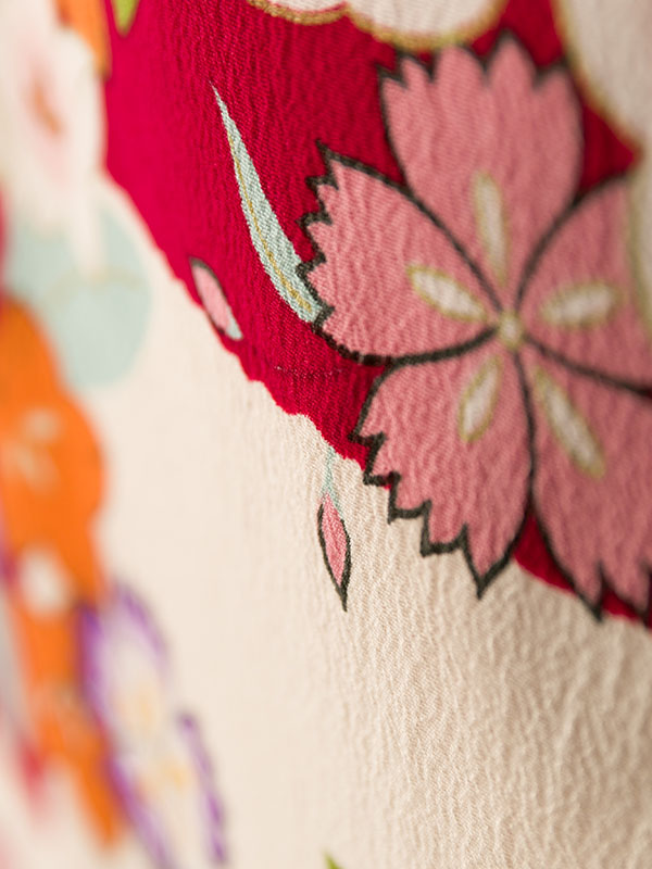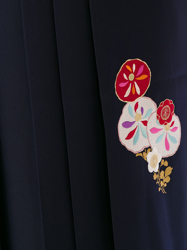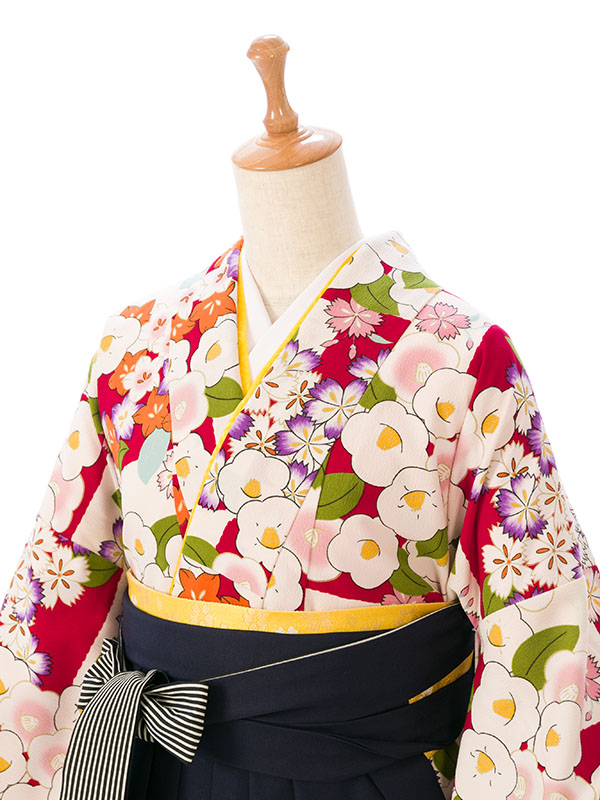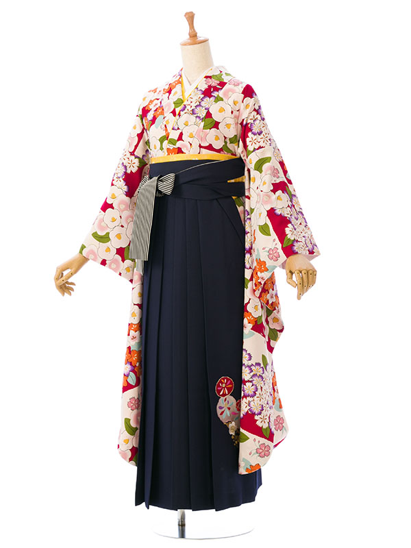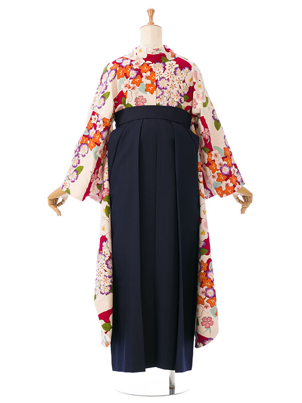 ■着物:クリーム白/赤 四季花■袴:紺袴 万寿菊刺繍 2.5
