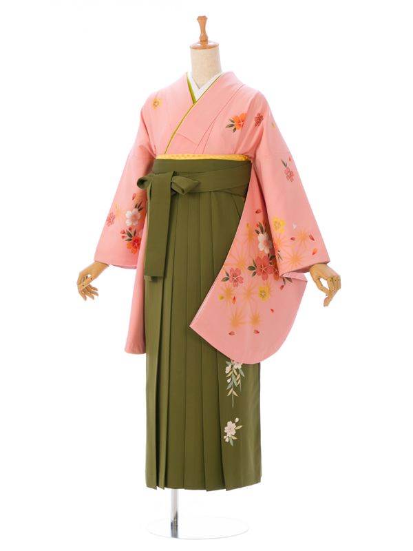■着物:ピンク地 桜柄■袴: 抹茶地 しだれ桜
