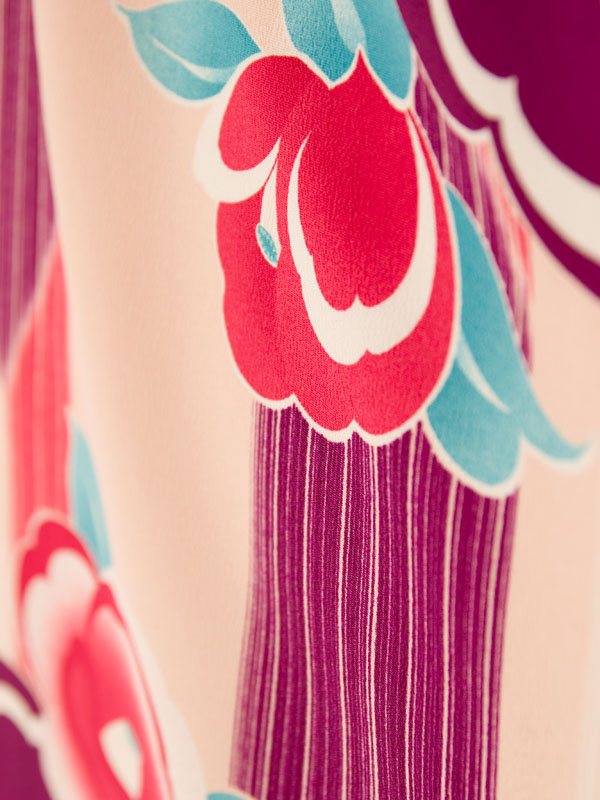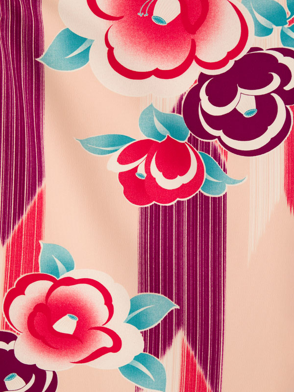 優しいピンク地に矢絣と牡丹 格安フルセットですが上質な小紋着物