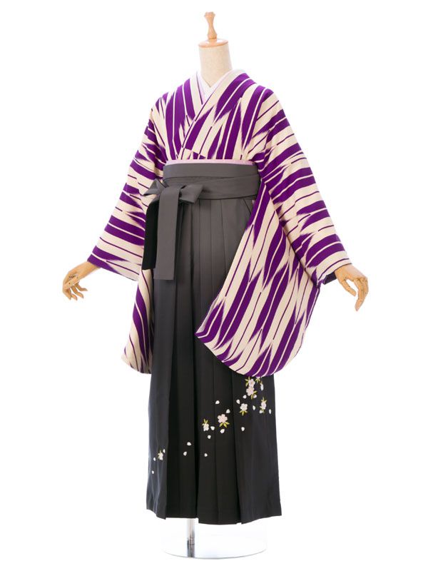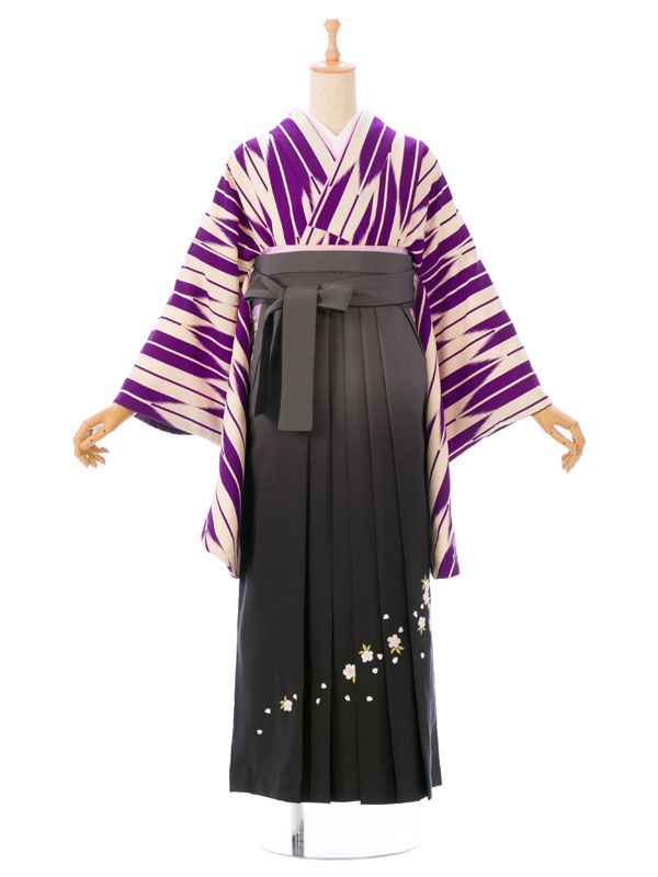 着物:紫×白 矢絣 袴:グレーぼかし袴 桜刺繍