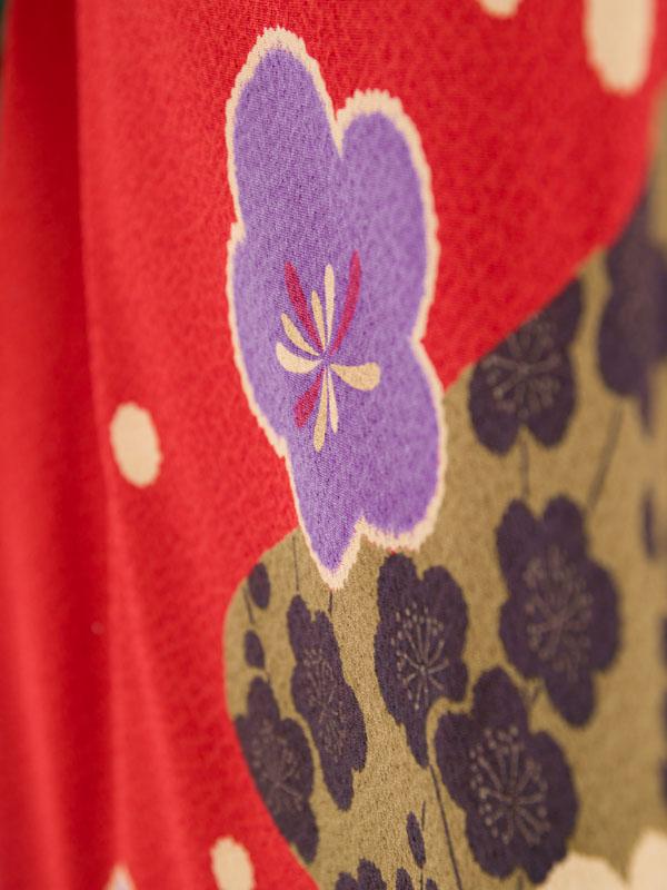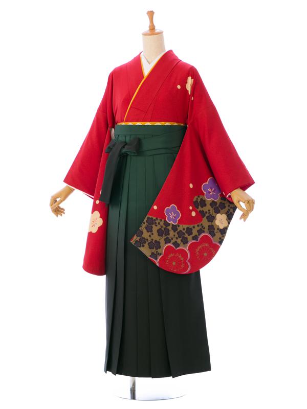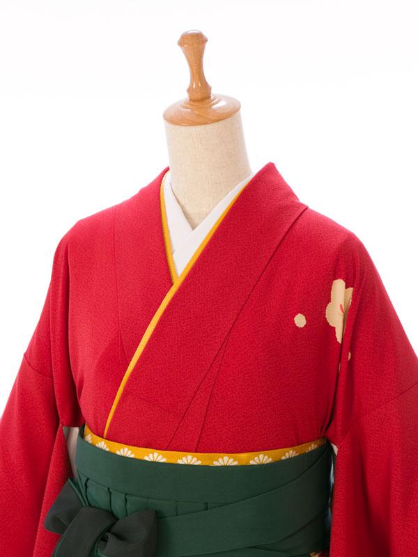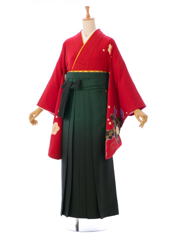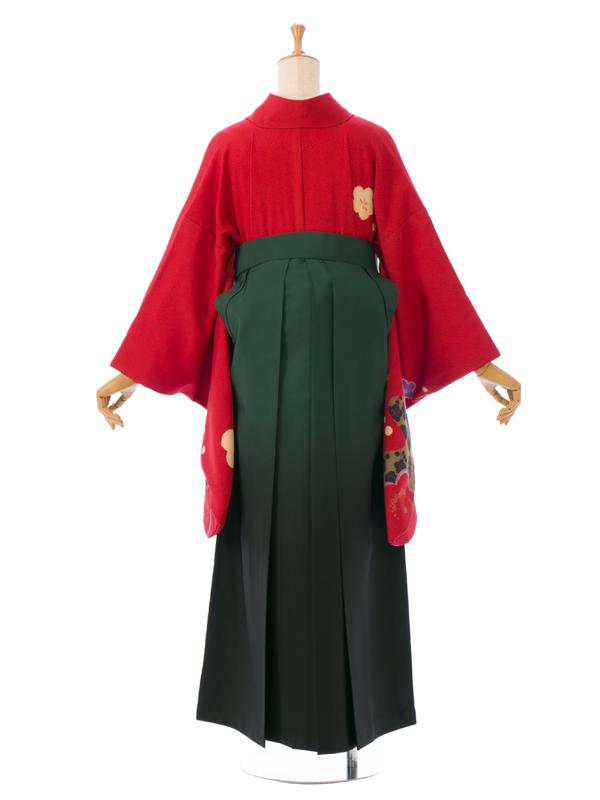 着物: 茜色に梅の花 袴: グリーンぼかし