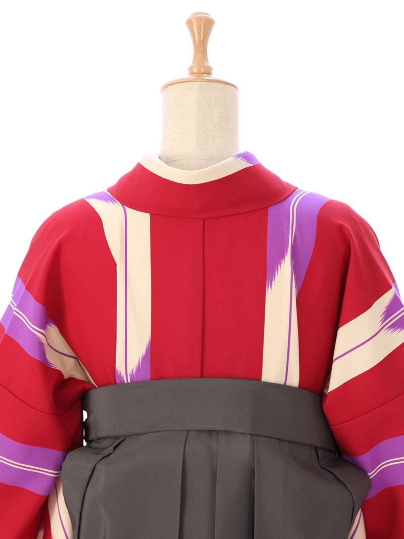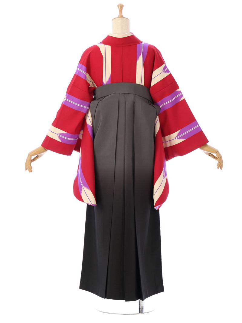 着物:赤×ピンク 矢絣 袴:グレーぼかし