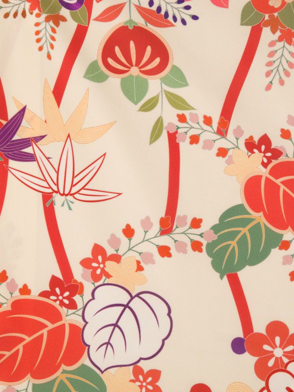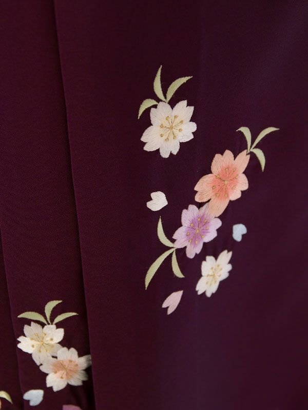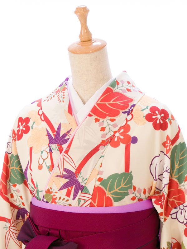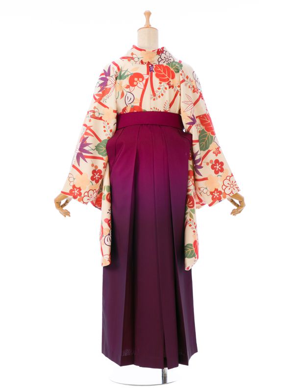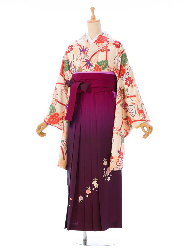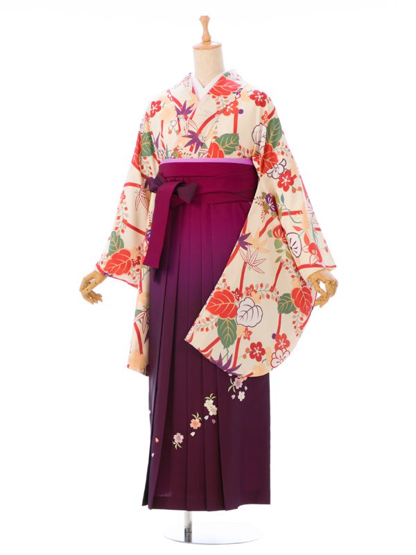 ■着物::クリーム地 立涌 橘 葵 笹 古典柄■袴:ワインぼかし袴 桜刺繍 2.6
