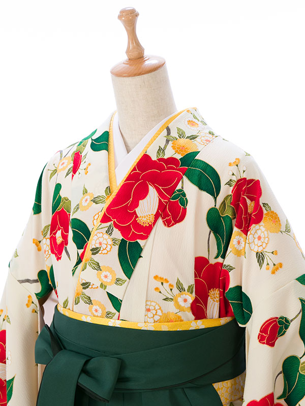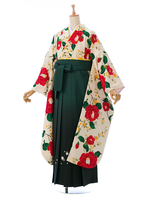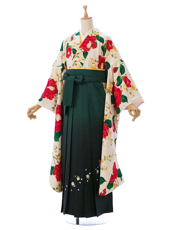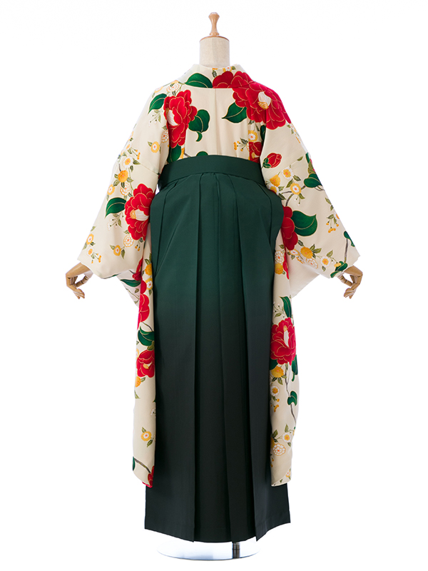 ■着物:クリーム白 乙女椿■袴:グリーンぼかし袴 桜刺繍入り 2.5
