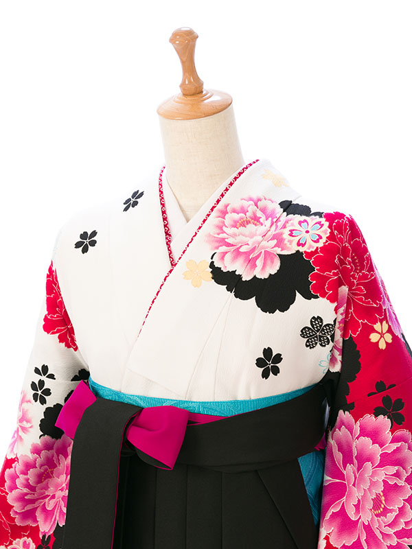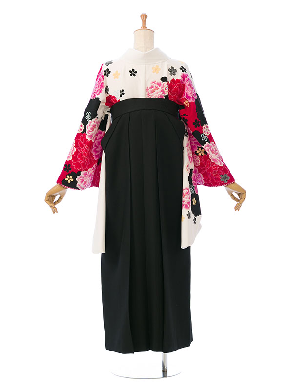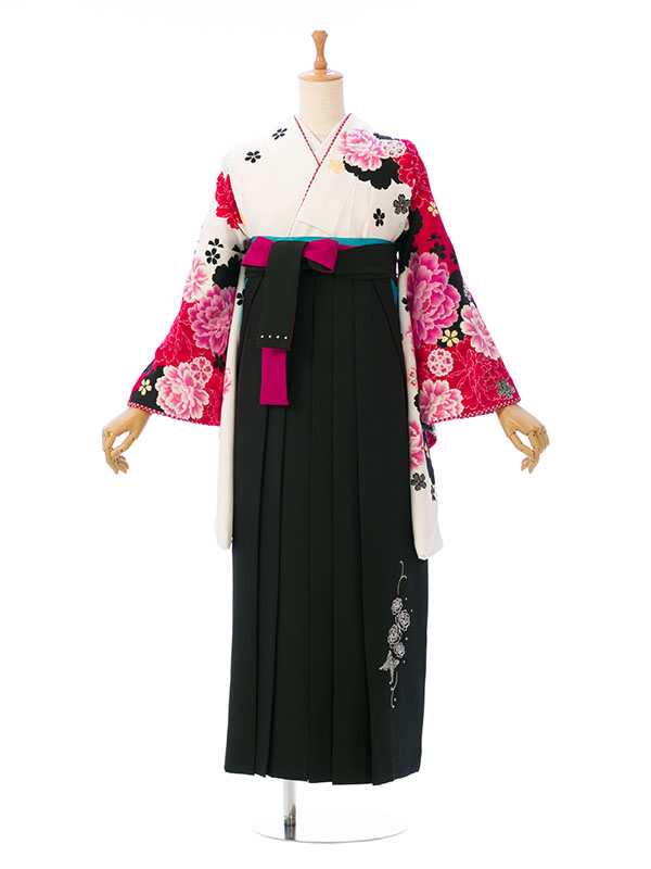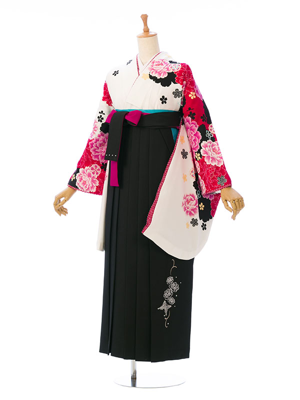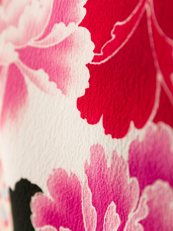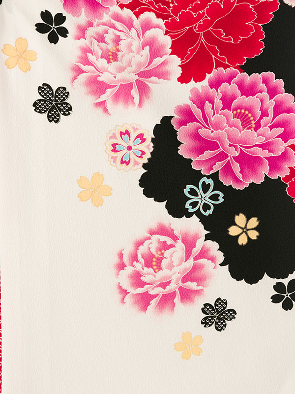 ■着物:寛斎白地ブランド ピンクと赤の牡丹 黒桜