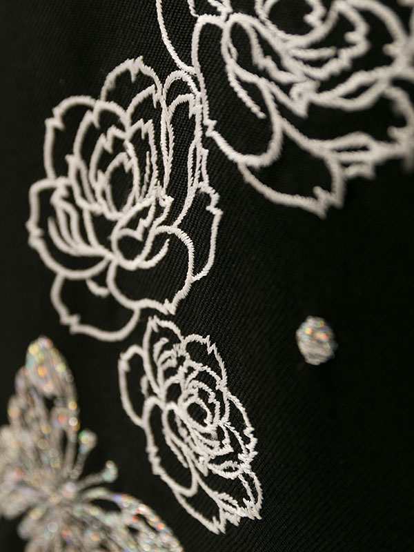 ■袴:黒地 薔薇 蝶 ラメ刺繍 2.5