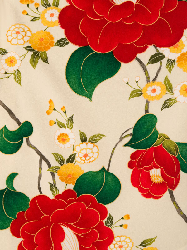 ■着物:クリーム地 乙女椿■袴:エンジ袴 桜刺繍