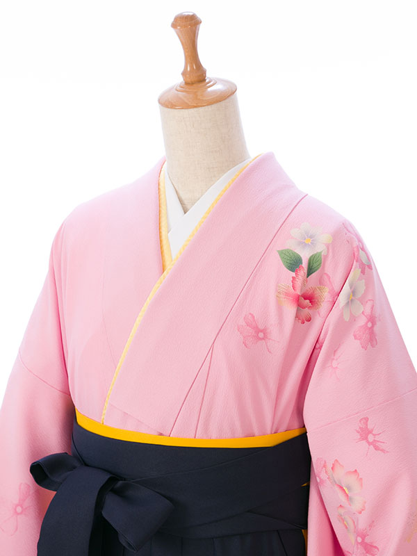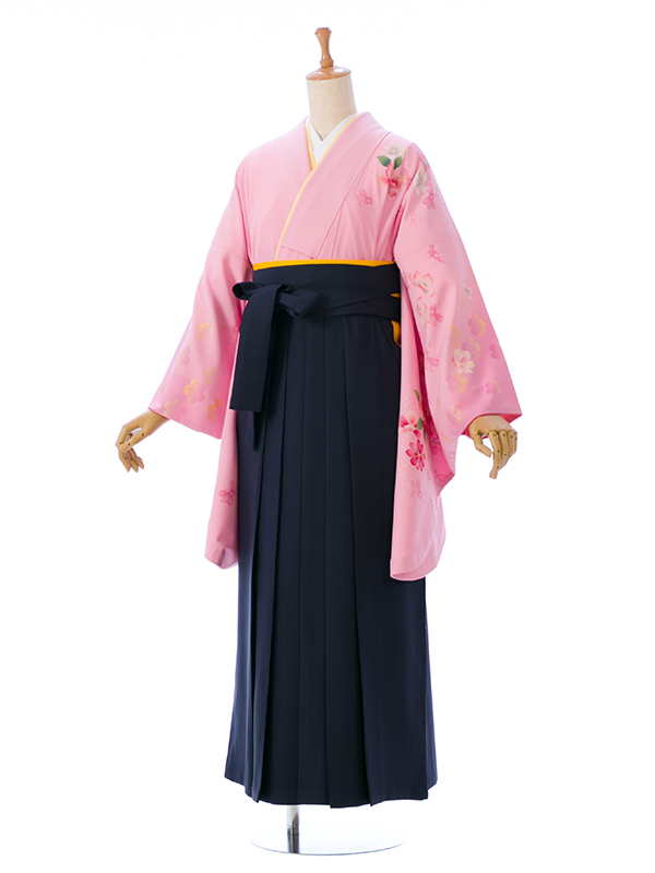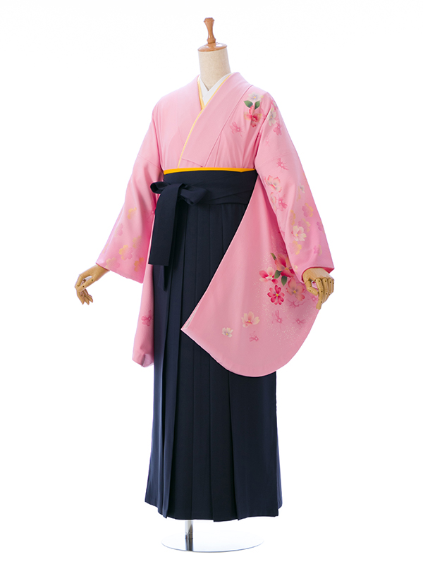 ■着物: ピンク 桜 裄長■袴: 紺袴 2.6