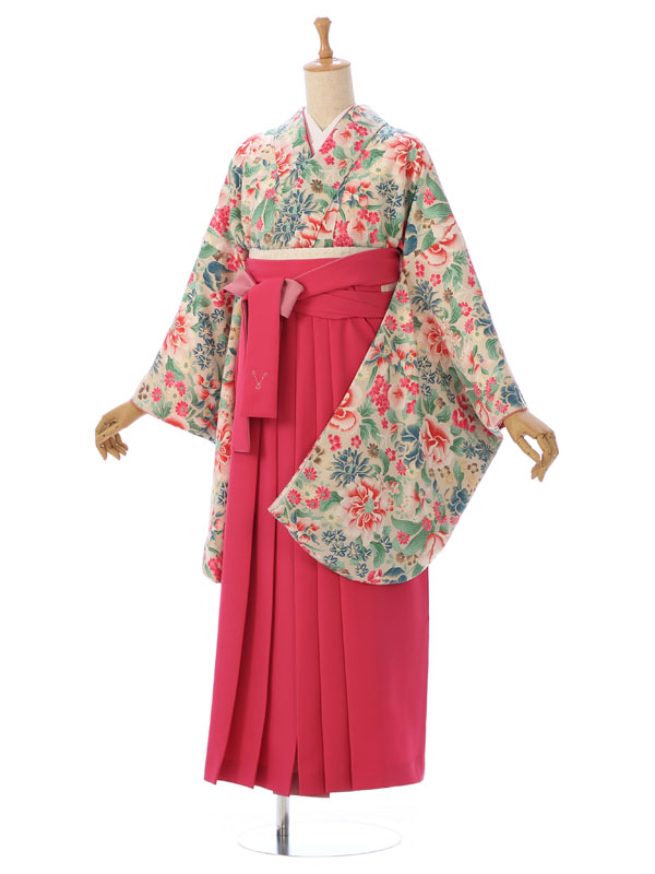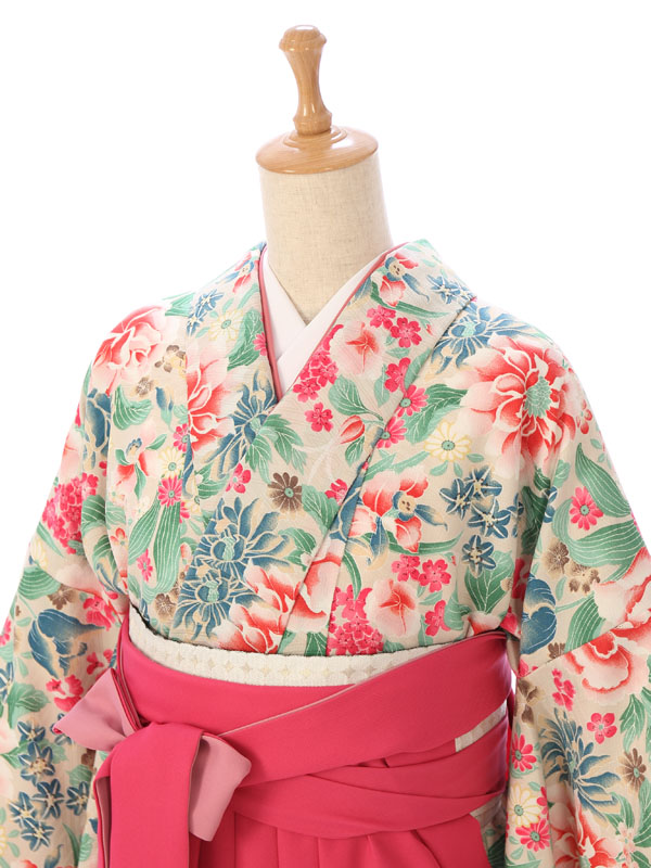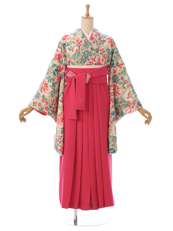 着物色/柄:ベージュ ブーケット「花づくし」 MN-1 袴:ピンク×薄ピンク バイカラー MH-2