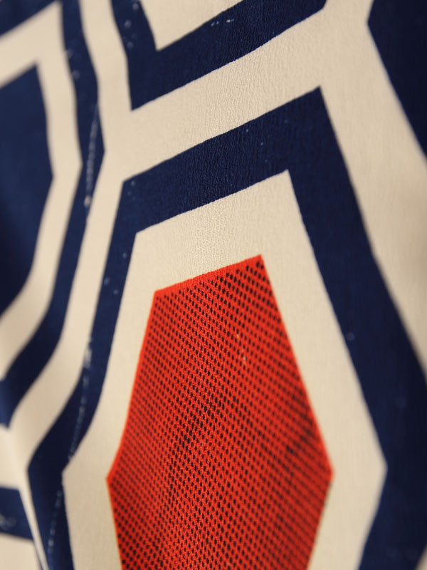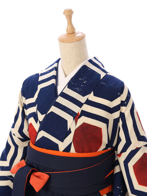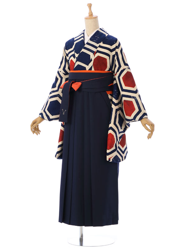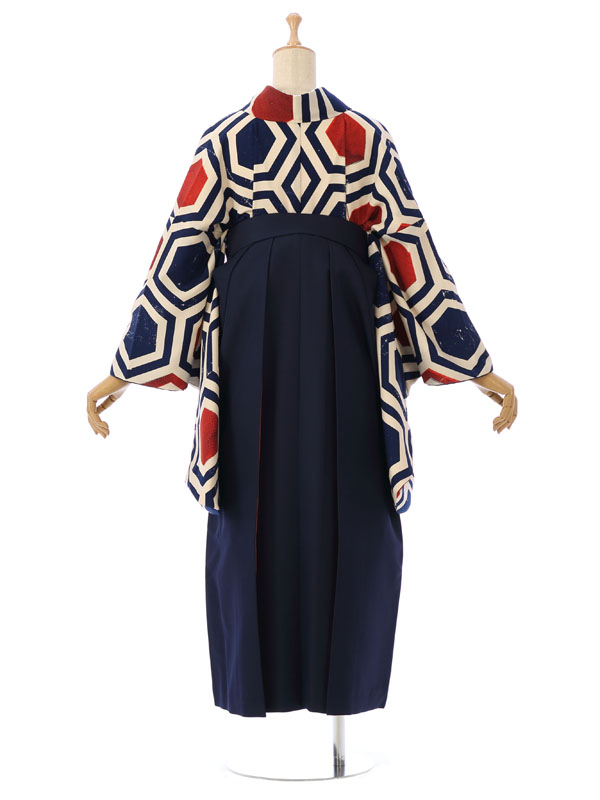 ■着物:クリーム地 紺赤 亀甲■袴:紺×オレンジ バイカラー アコーディオンタイプ
