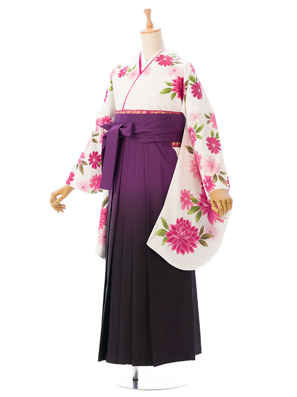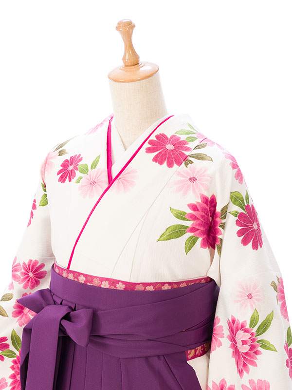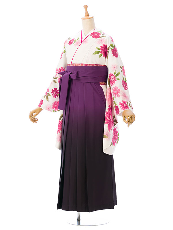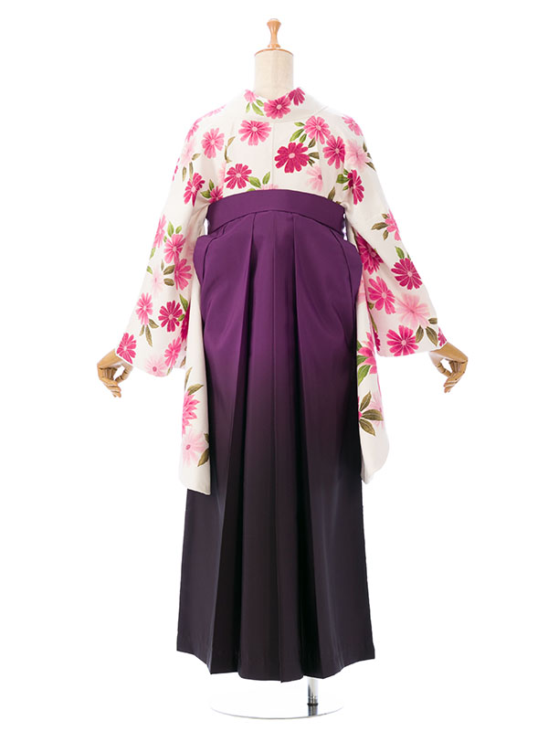 ■着物:白地 ピンク秋桜■袴:紫ぼかし袴 2.3