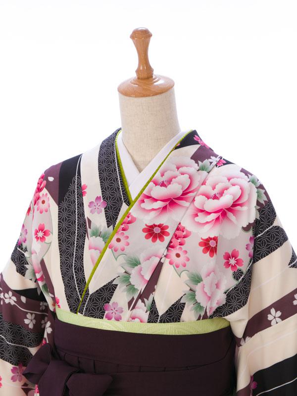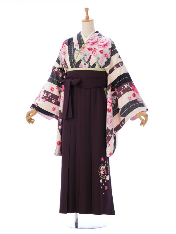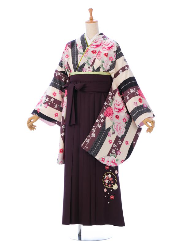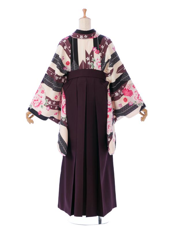 ■着物:黒/クリーム 矢絣 牡丹■袴:茶紫地 雪輪に梅 2.4