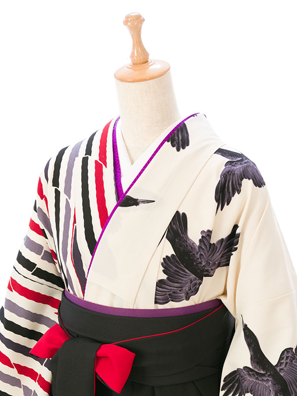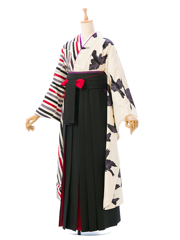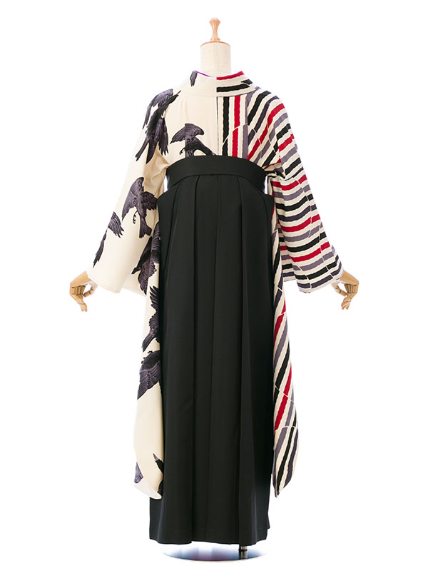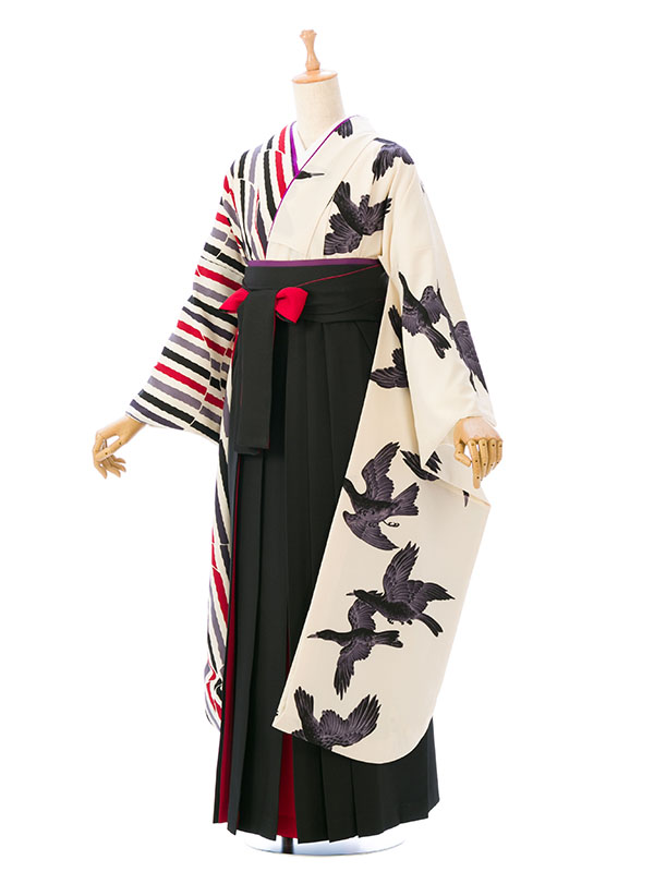 ■着物:白黒 縞と八咫烏の片身変わり■袴:赤黒袴 バイカラー 2.5