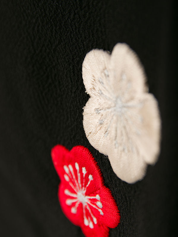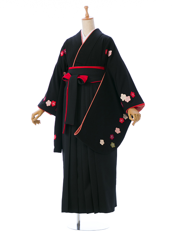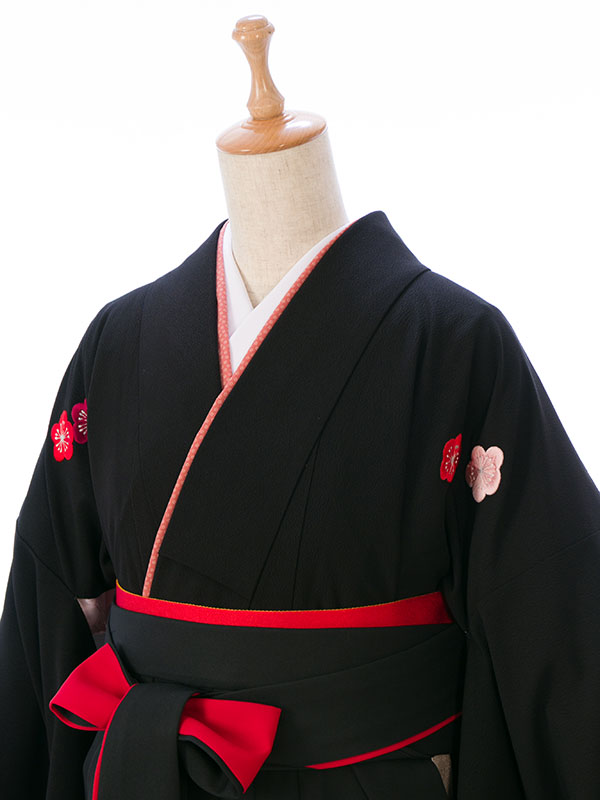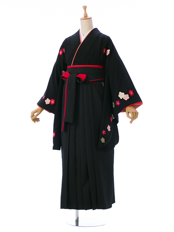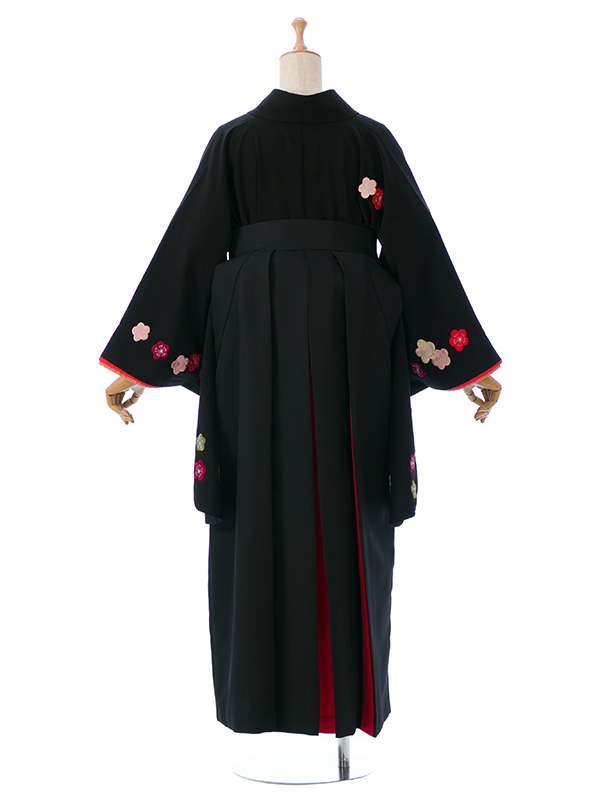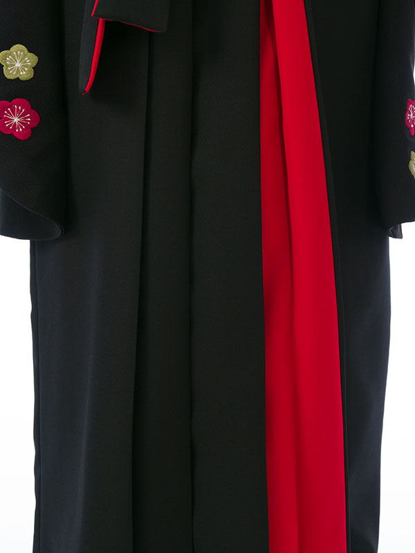 ■着物: 寛斎 黒 梅の花刺繍■袴: 黒×赤袴 バイカラー 2.4