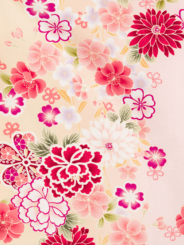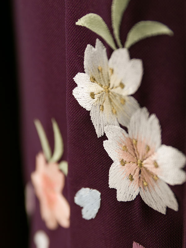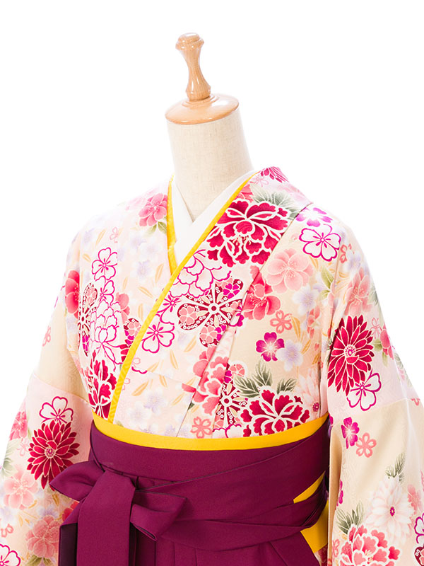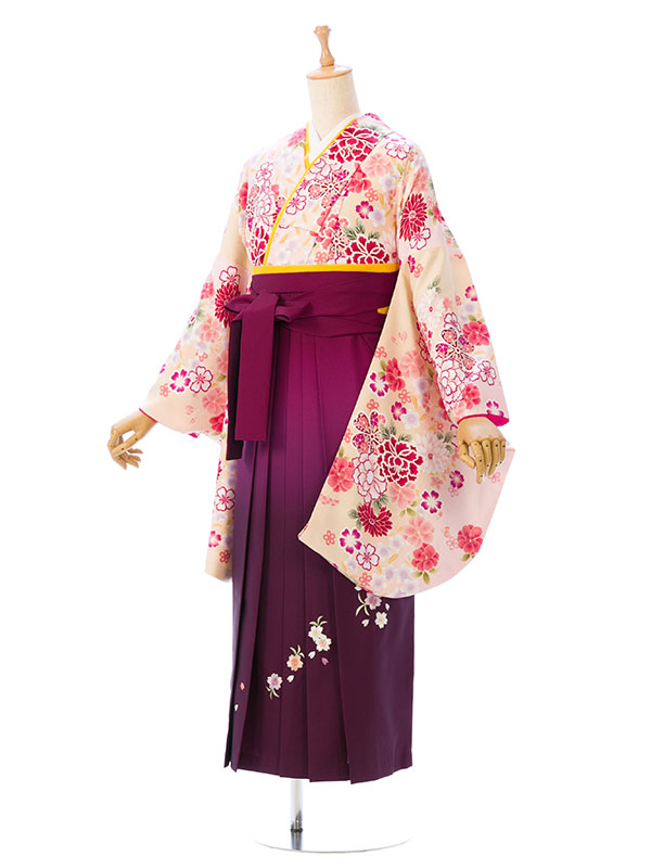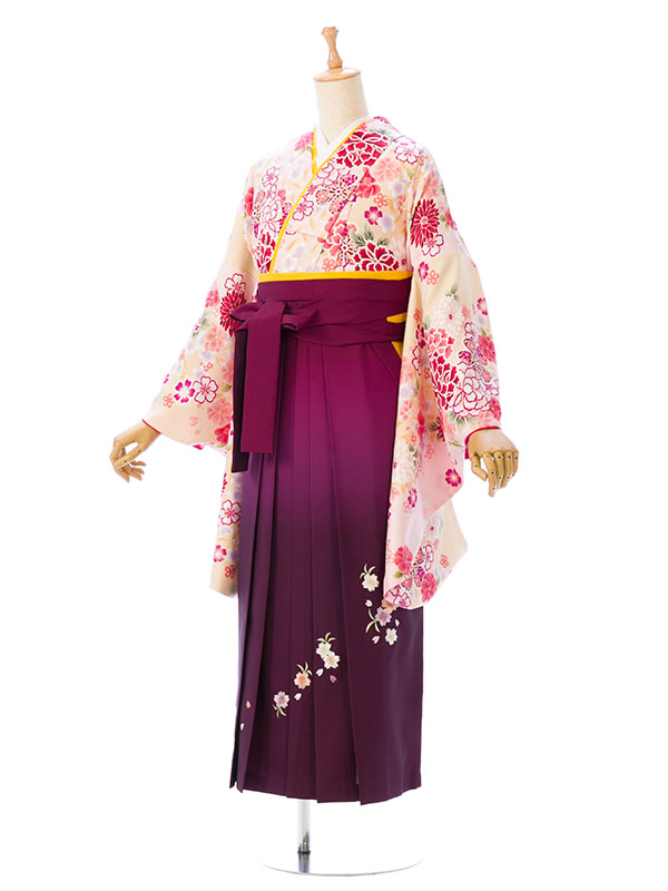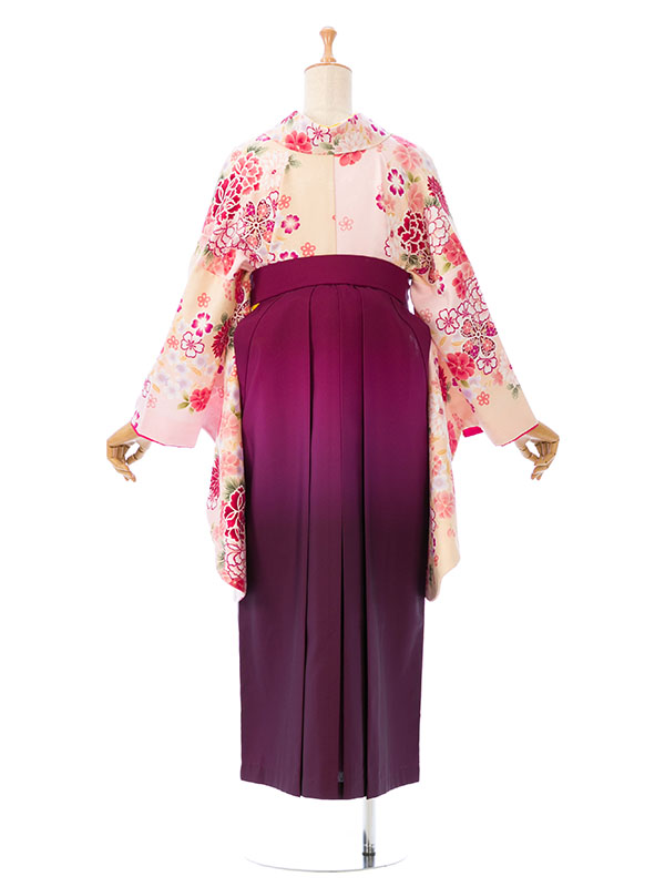 着物:ピンク地 桜菊 牡丹に華紋 袴:ワインぼかし袴 桜刺繍 2.3