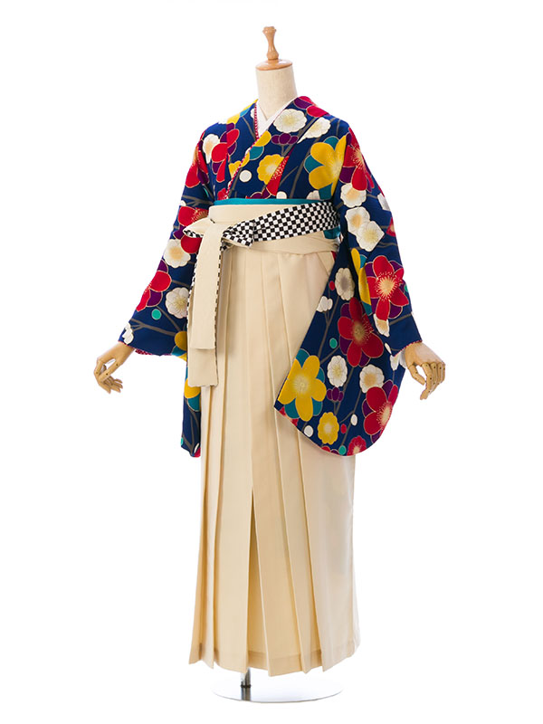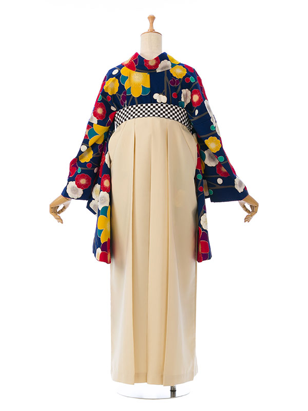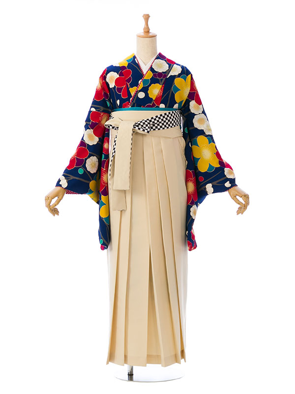 着物:紺 梅袴:アイボリー袴 紐白黒 2.6