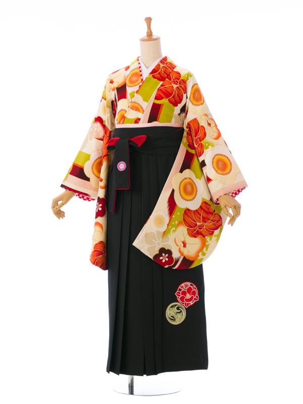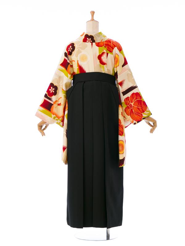 着物:クリーム×赤 梅に矢絣