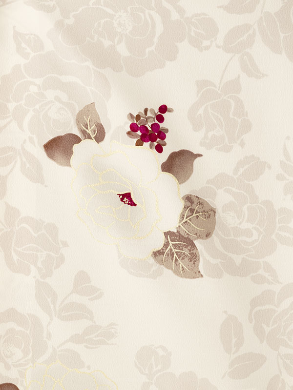着物:ベージュ地に薔薇