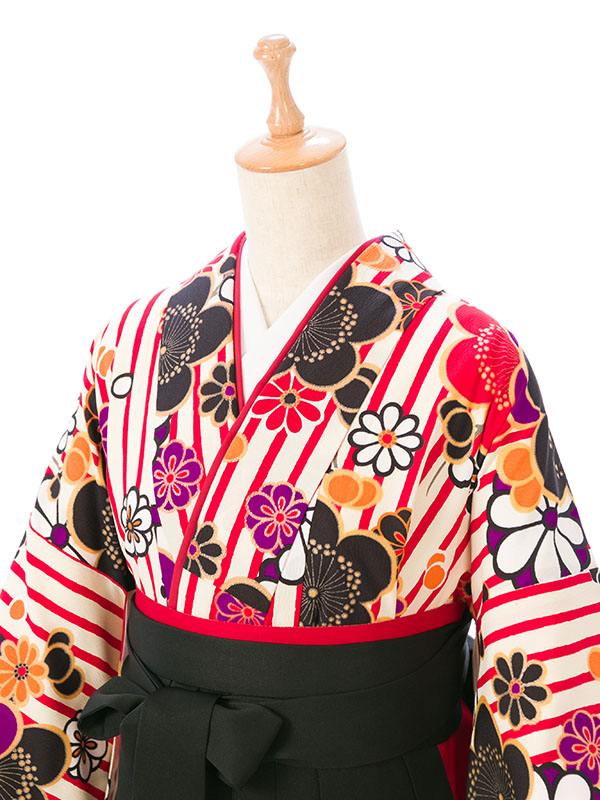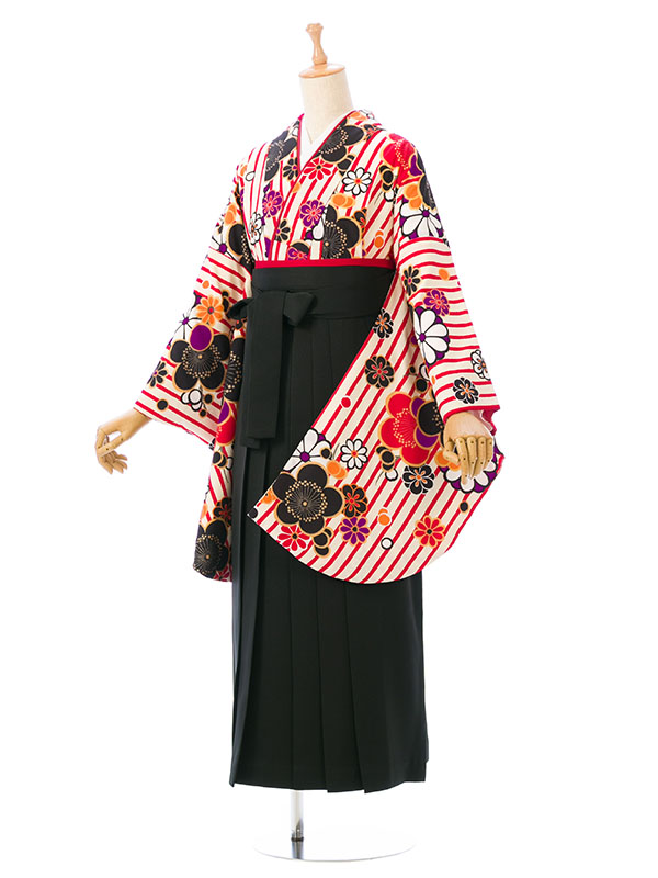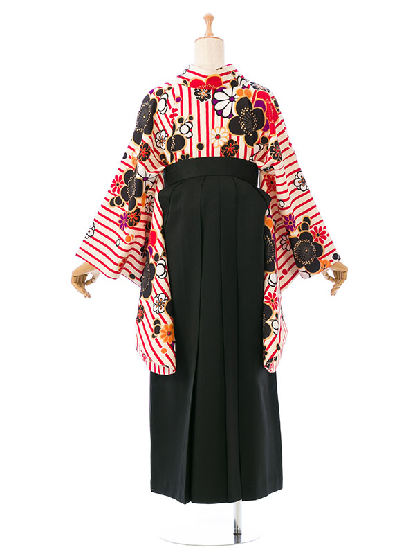 ■着物:白/赤 縞地 梅文様■袴:黒袴 2.4