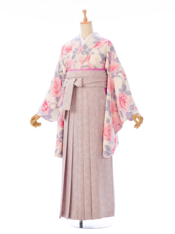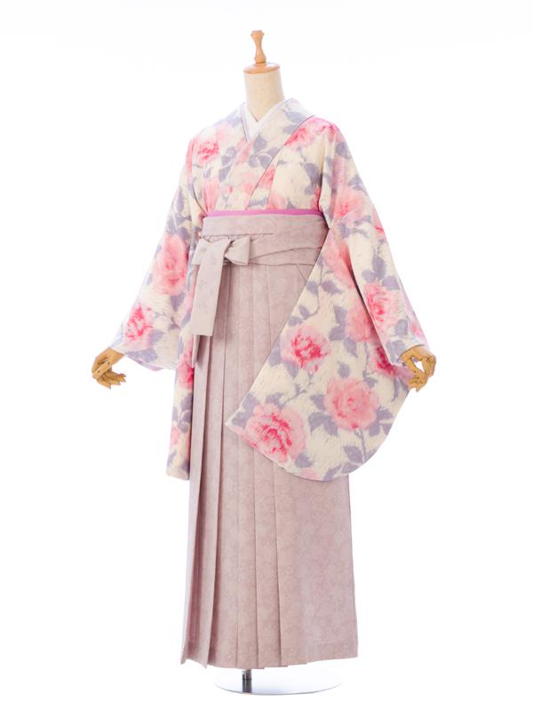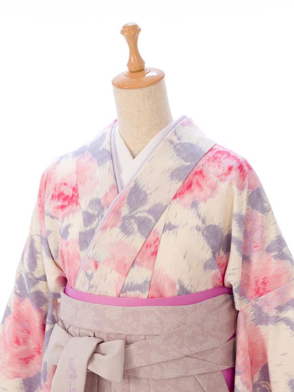 ■着物:クリーム地 ローズ■袴:うす紫 花更紗