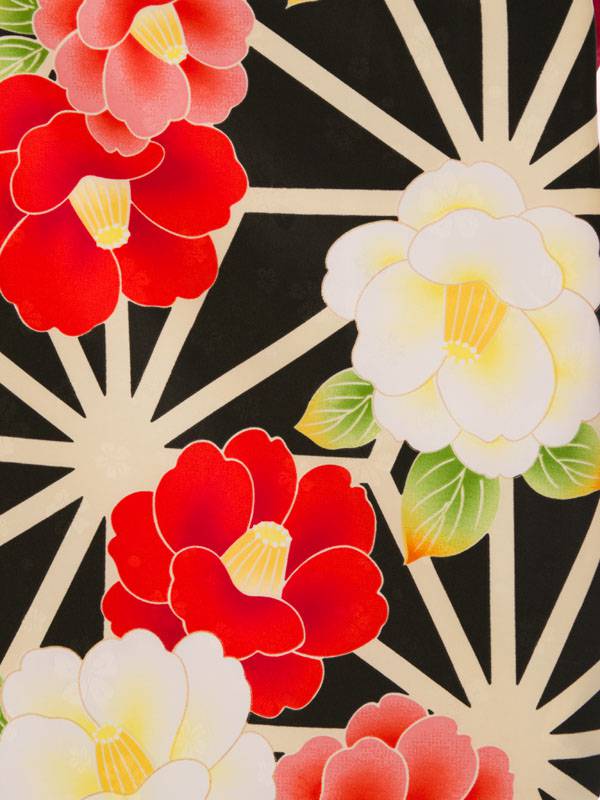 着物:夢千代 ブランド 黒地にクリーム麻の葉