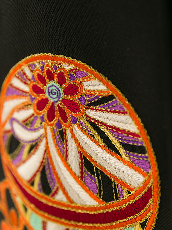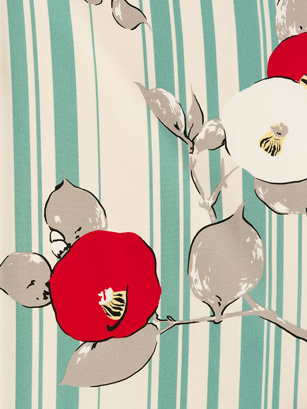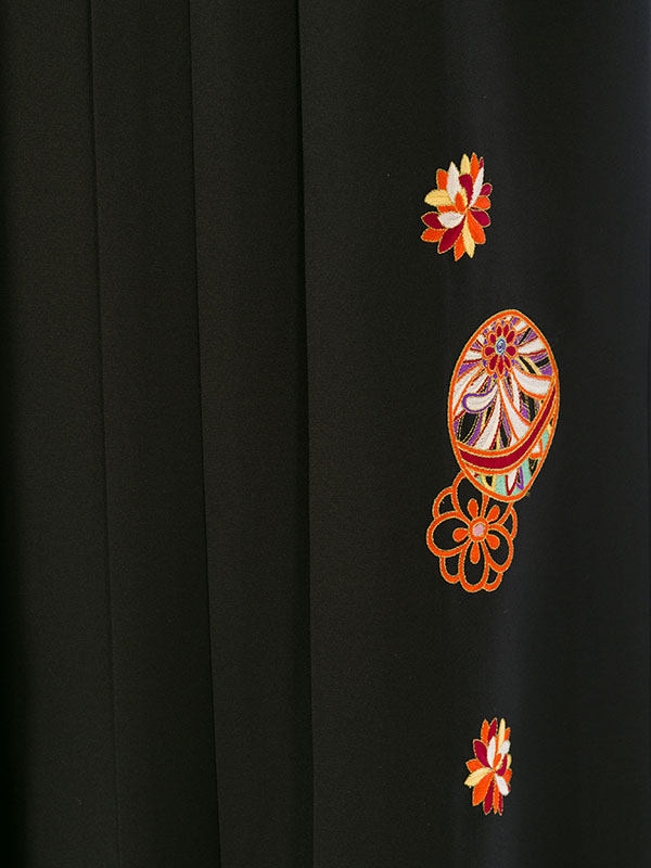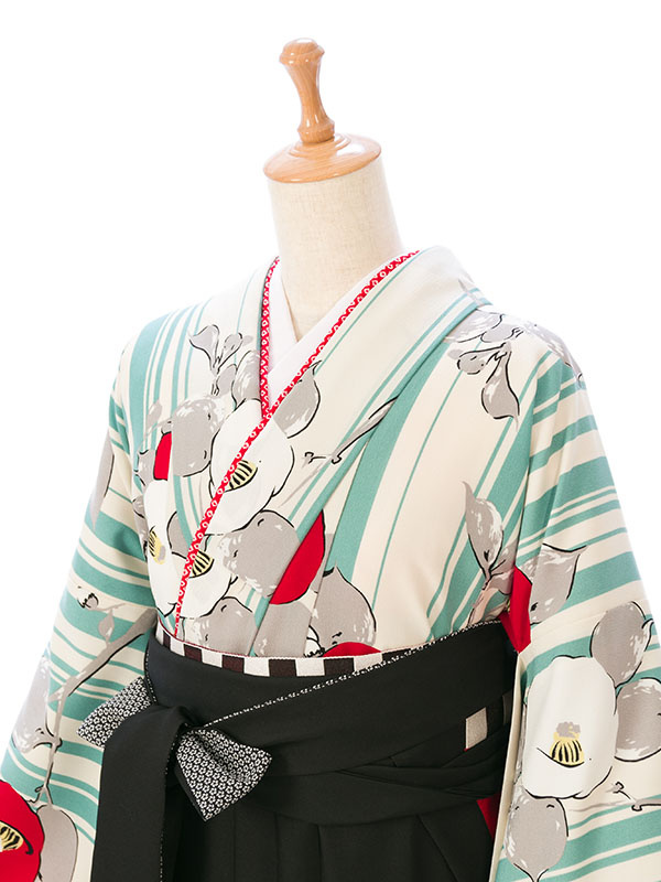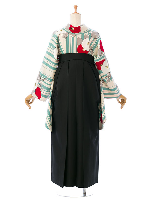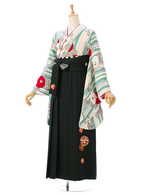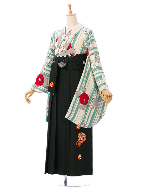 ■着物:浅葱色/白色 縞に椿■袴:黒袴 鞠と華紋 刺繍入り2.5