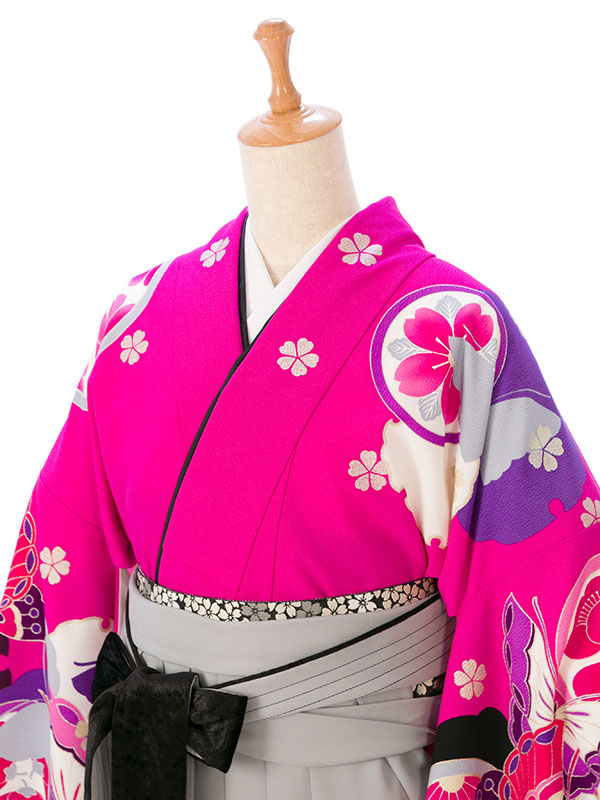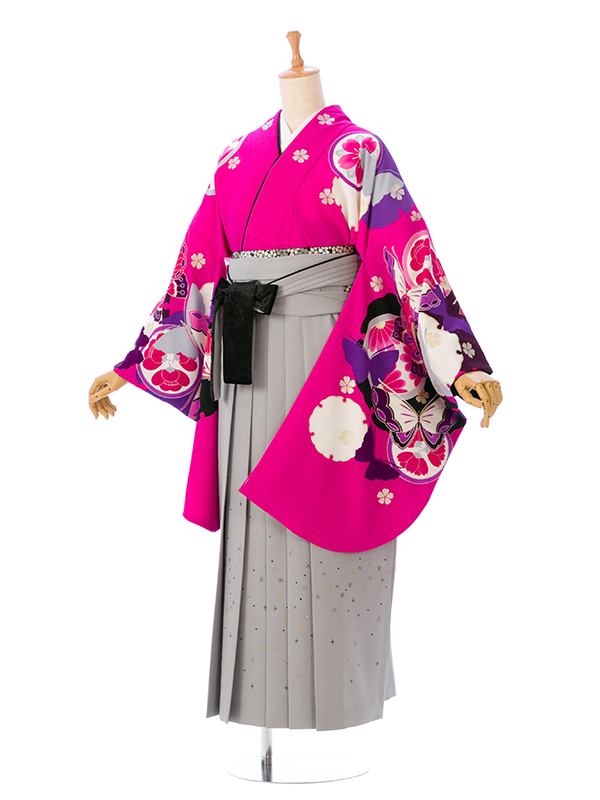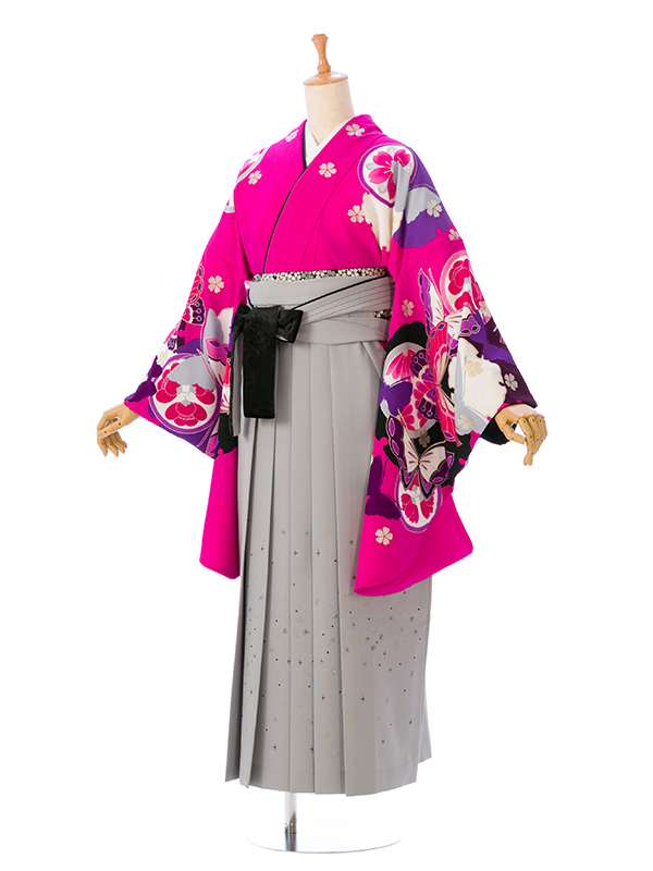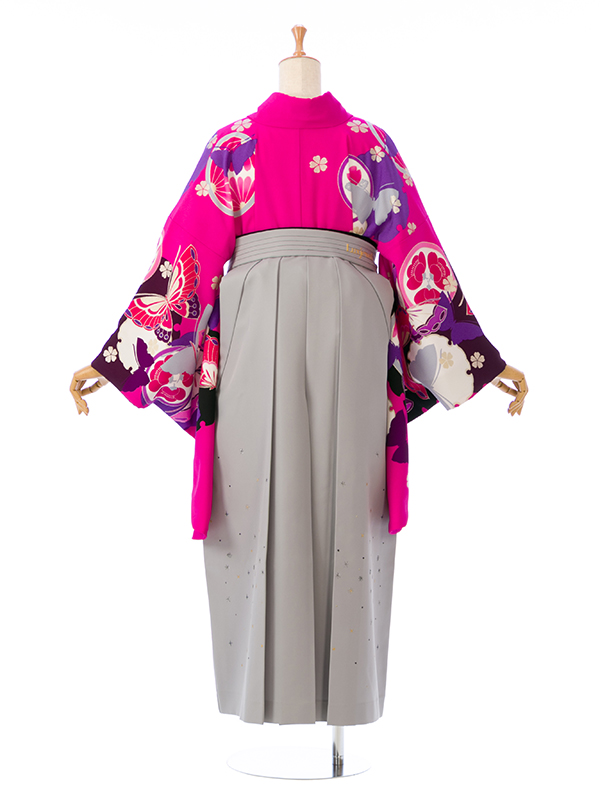 ■着物:ピンク地 雪輪に蝶 菊■袴:グレーぼかし袴 小桜刺繍 2.6