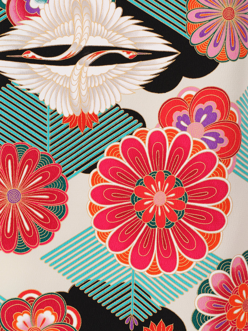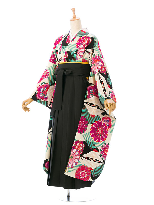 ■着物:クリーム白地 向かい鶴菱 華紋■袴:黒袴 2.5