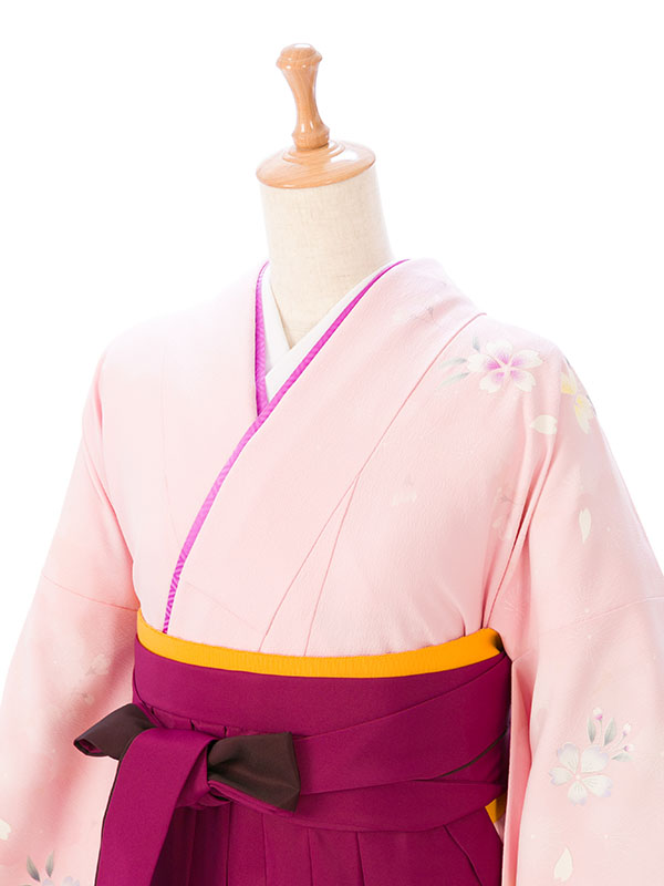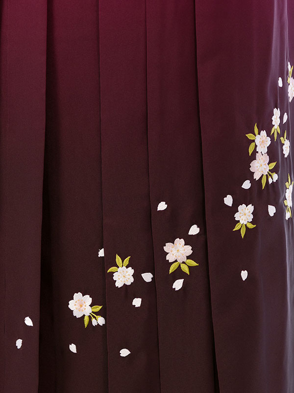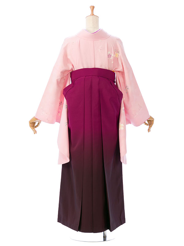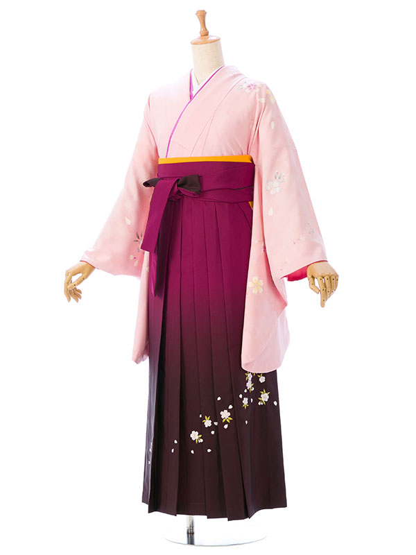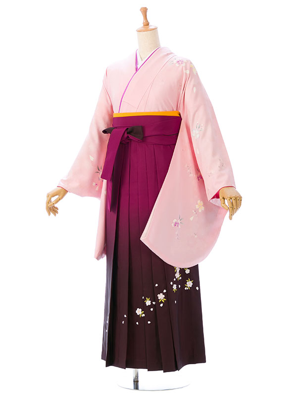 ■着物: ピンクに桜■袴: ワインぼかし袴 桜刺繍 2.5
