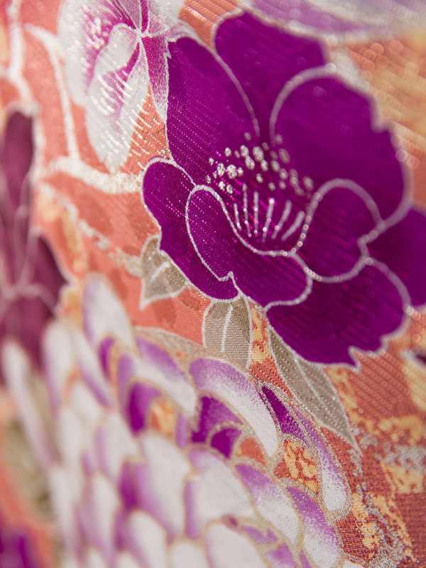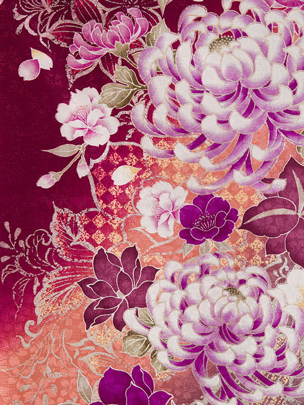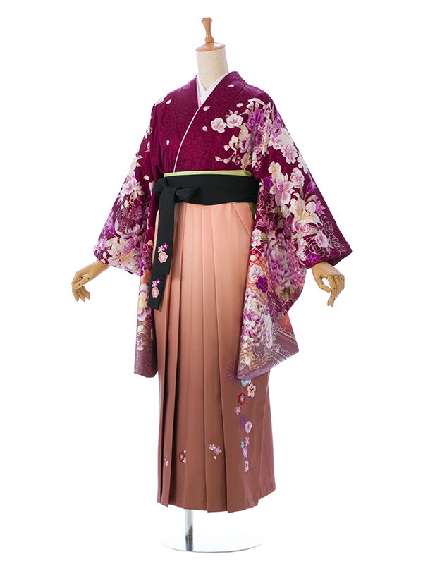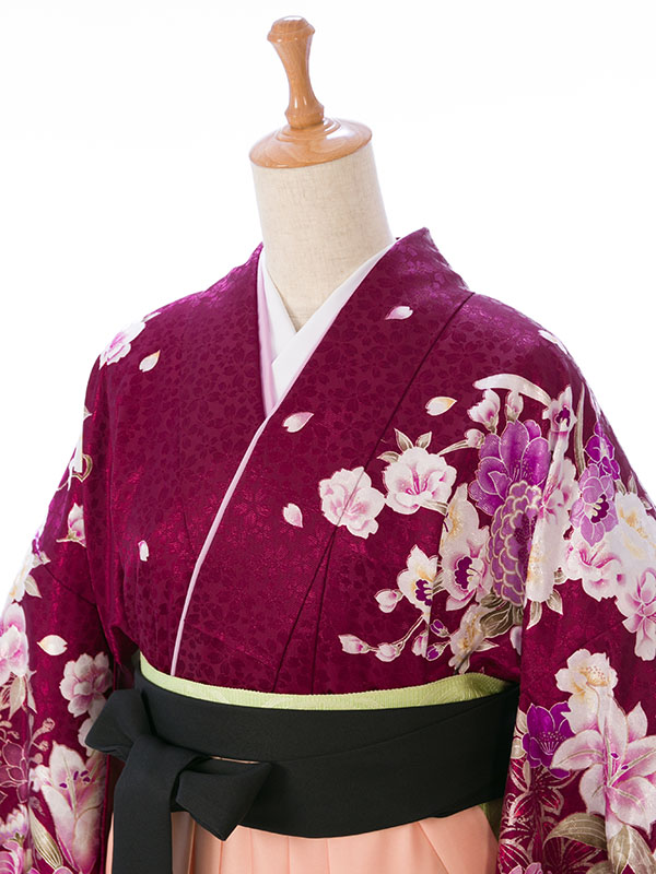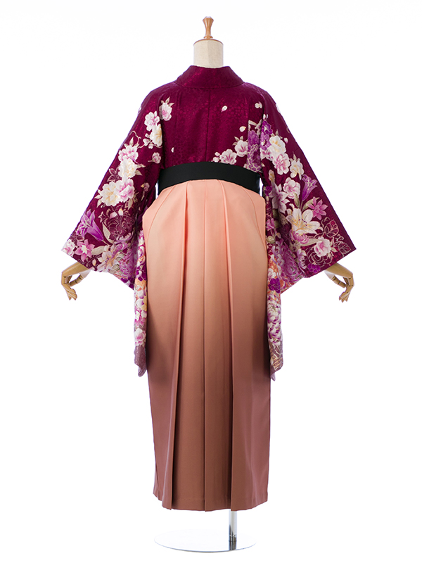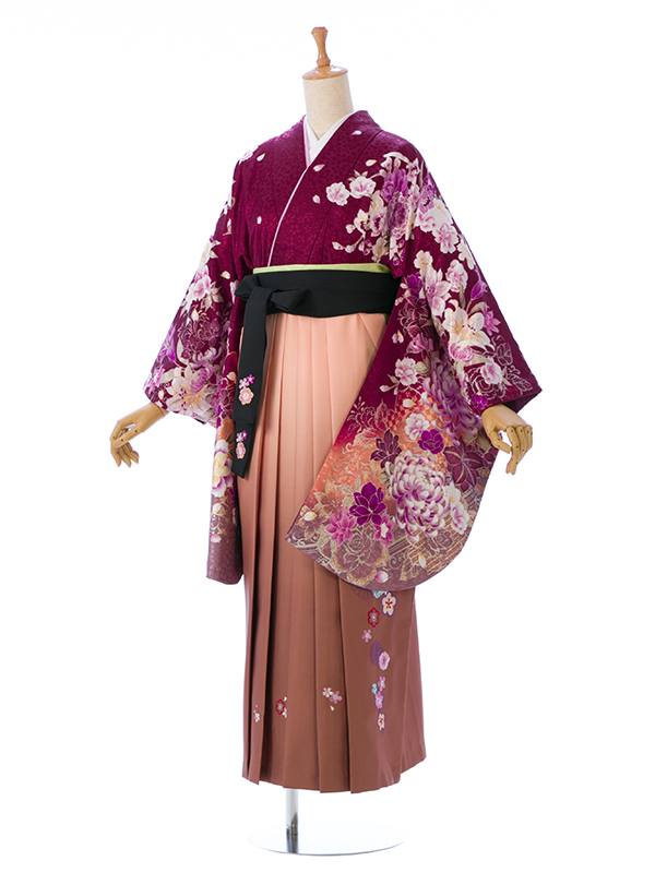 ■着物:ワインラメ桜地紋 乱菊と百合■袴:ベージュぼかし袴 刺繍入り 2.5