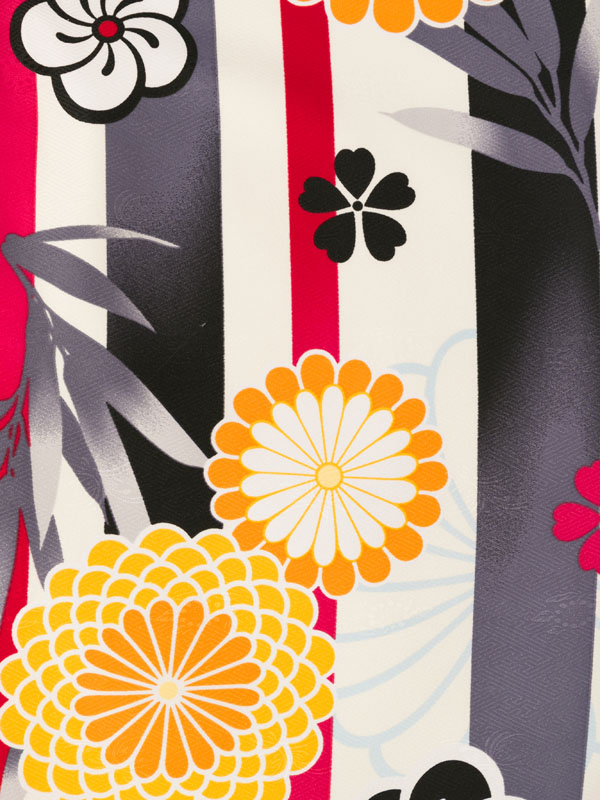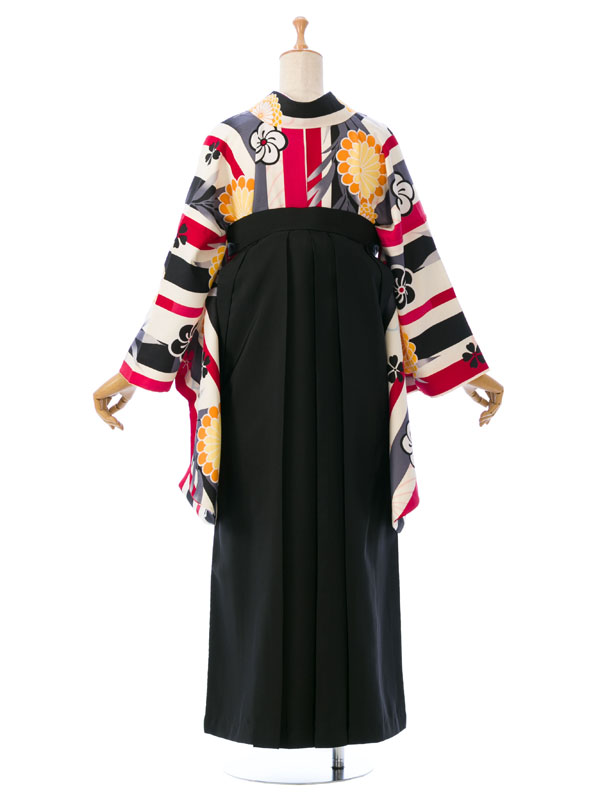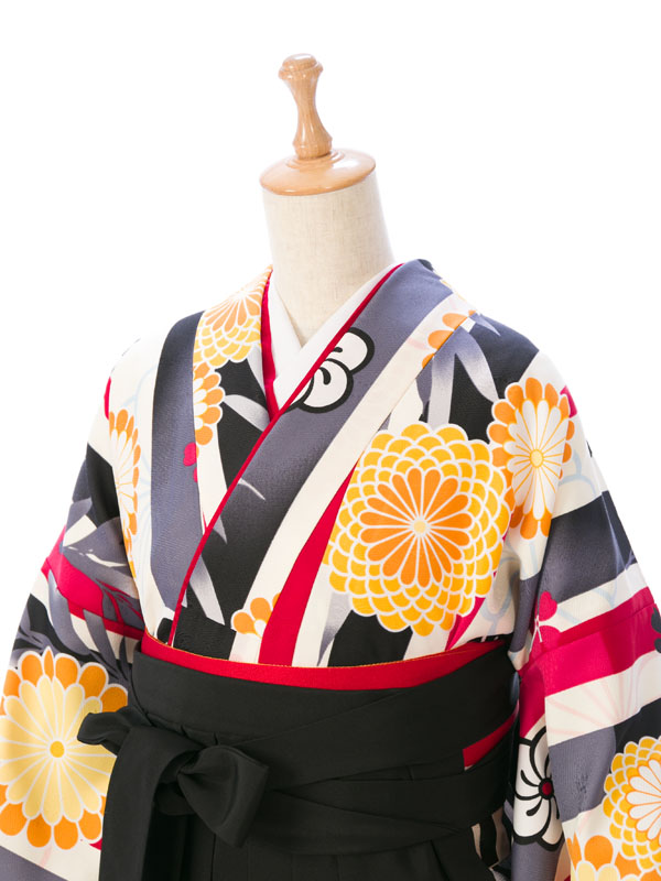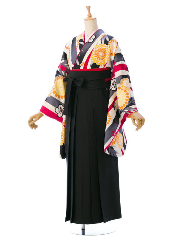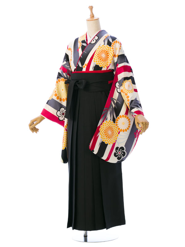 ■着物:白地 黒/グレー縞 菊梅竹■袴:黒袴 2.5